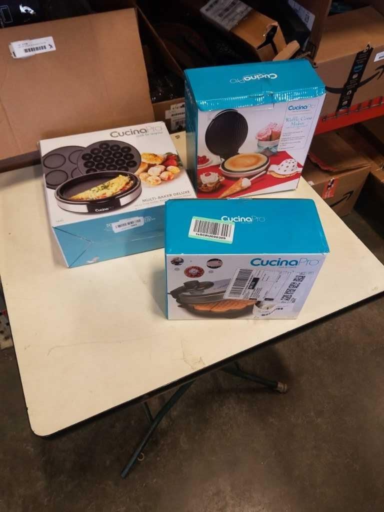 CUCINA PRO WAFFLE CONE MAKER, MULTI BAKER DELUXE AND CLASSIC AMERICAN HEART WAFFLER