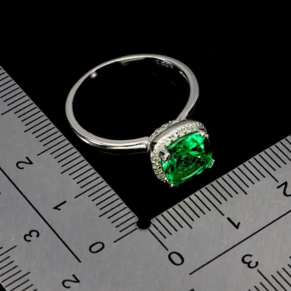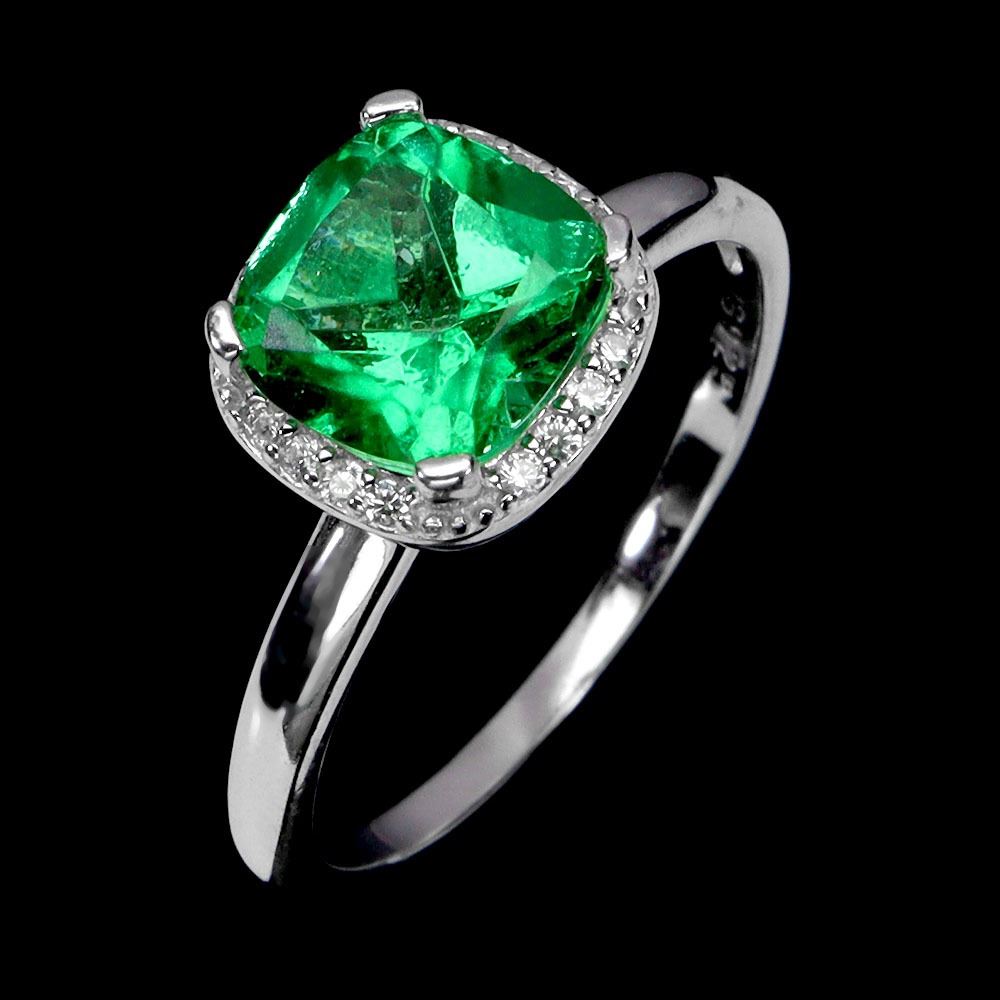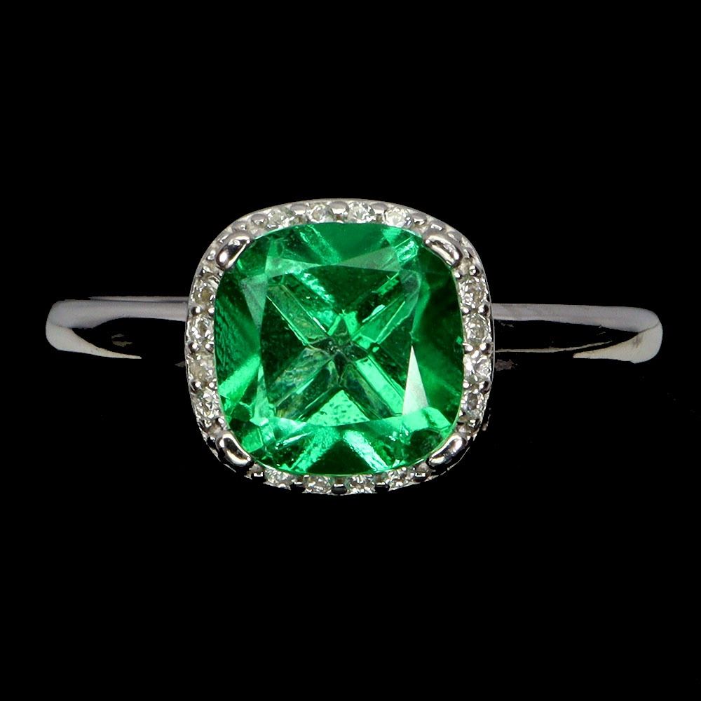 CUSHION CUT GREEN TOPAZ RING IN 14K WHITE PLATED GOLD OVER 925 STERLING SILVER - SIZE 7 -APPRAISED REPLACEMENT VALUE