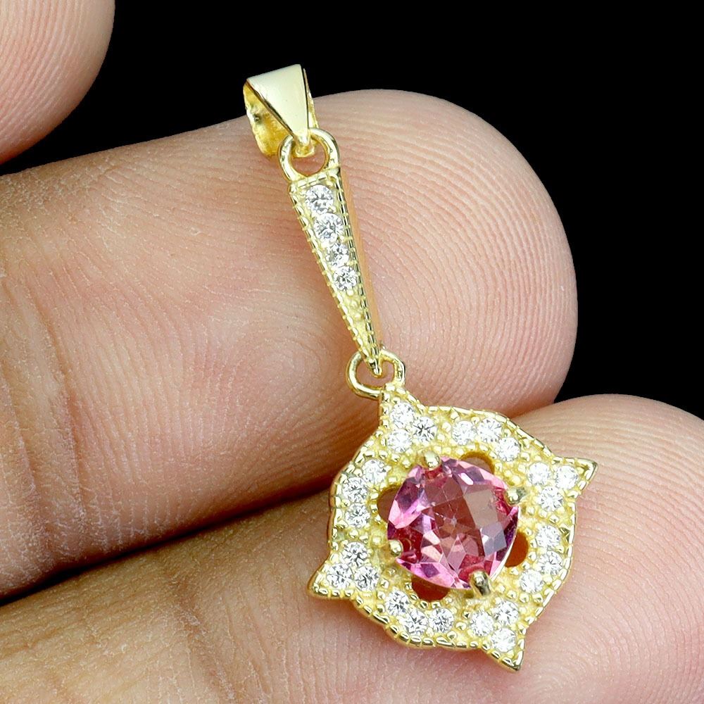CUSHION CUT, HIGH CLARITY PINK TOPAZ PENDANT IN 14K YELLOW PLATED GOLD OVER 925 STERLING SILVER - AP