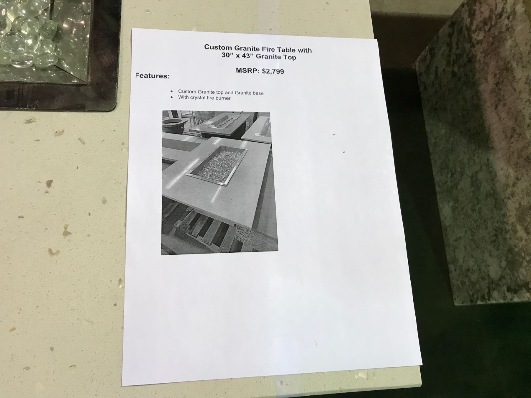 CUSTOM CRYSTAL FIRE ALL GRANITE COMMERCIAL BURNER PROPANE & NG OUTDOOR FIRE TABLE DIMENSIONS: 30"D X 43"W X 23"H MSRP: $2,800