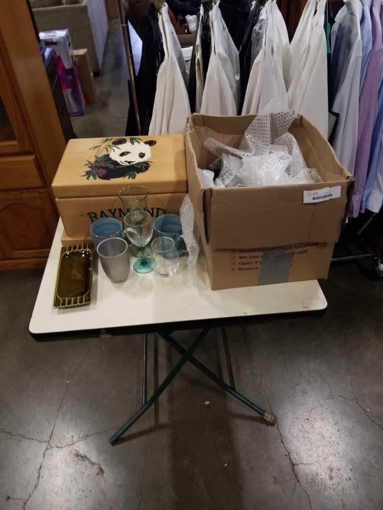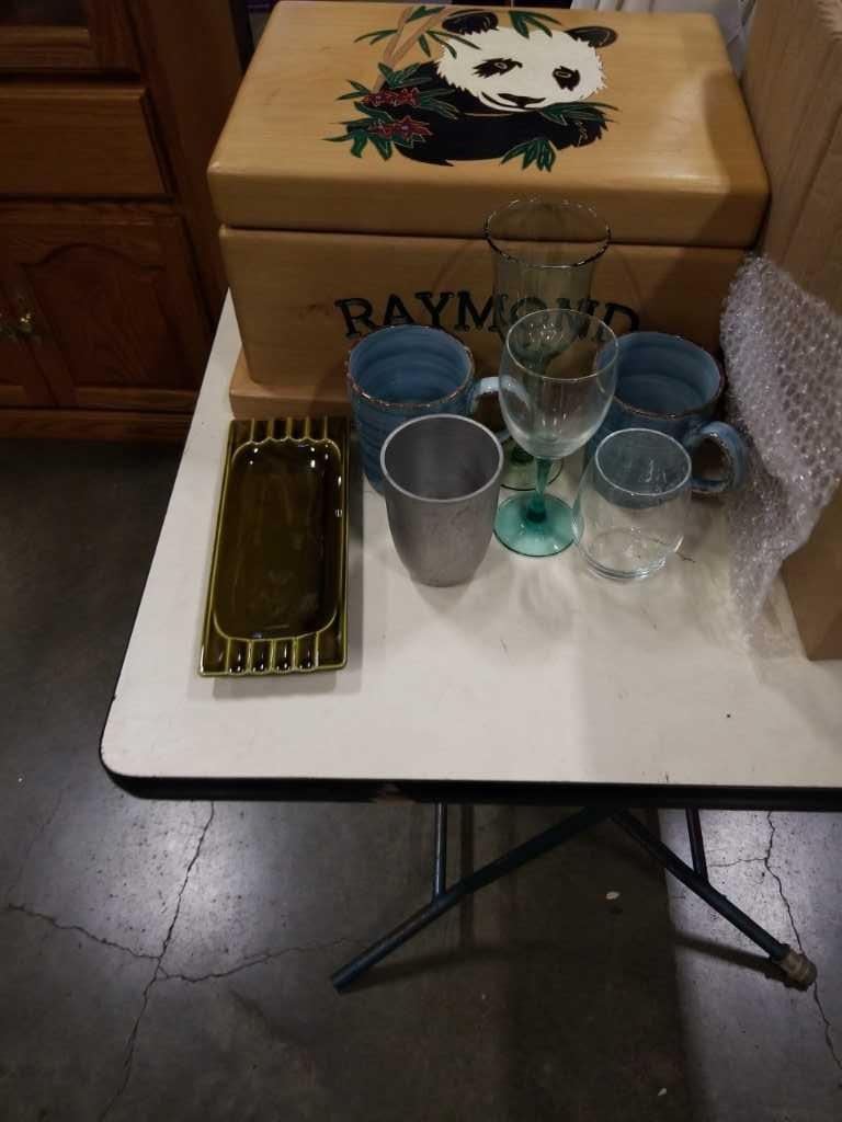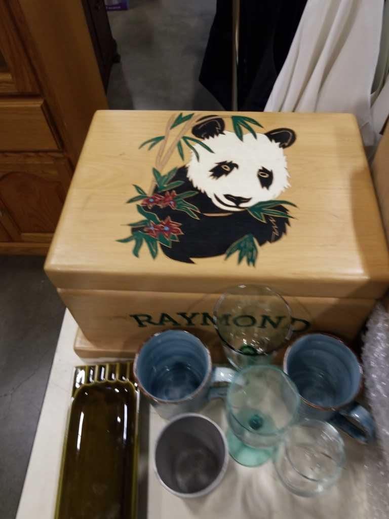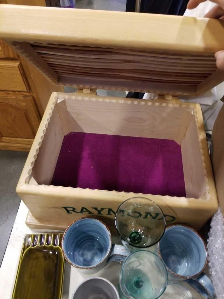 CUSTOM WOOD BOX, AND BOX OF COLLECTIBLES