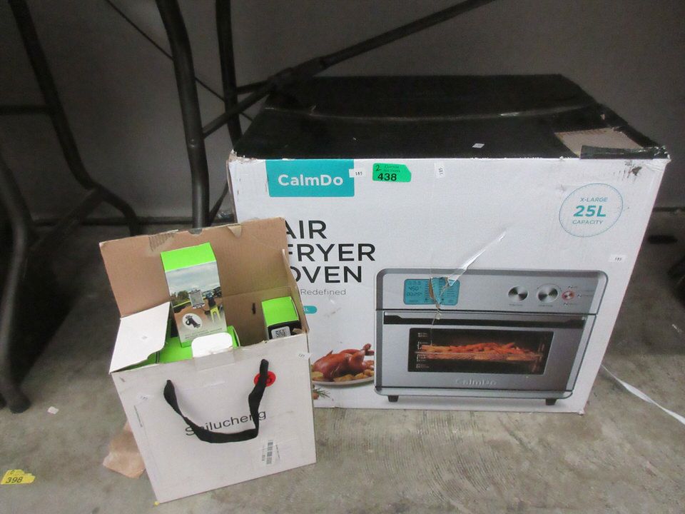 CalmDo 25L X Large AF25L air fryer. New rotatable bicycle phone holders. Customer returns.