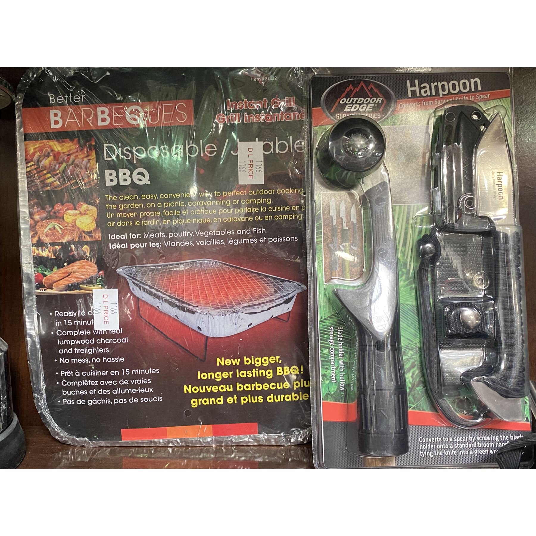 Camping Set - includes 2 Working Condition LED Lanterns/Disposable BBQ, Outdoor Edge Survival Knife & More
