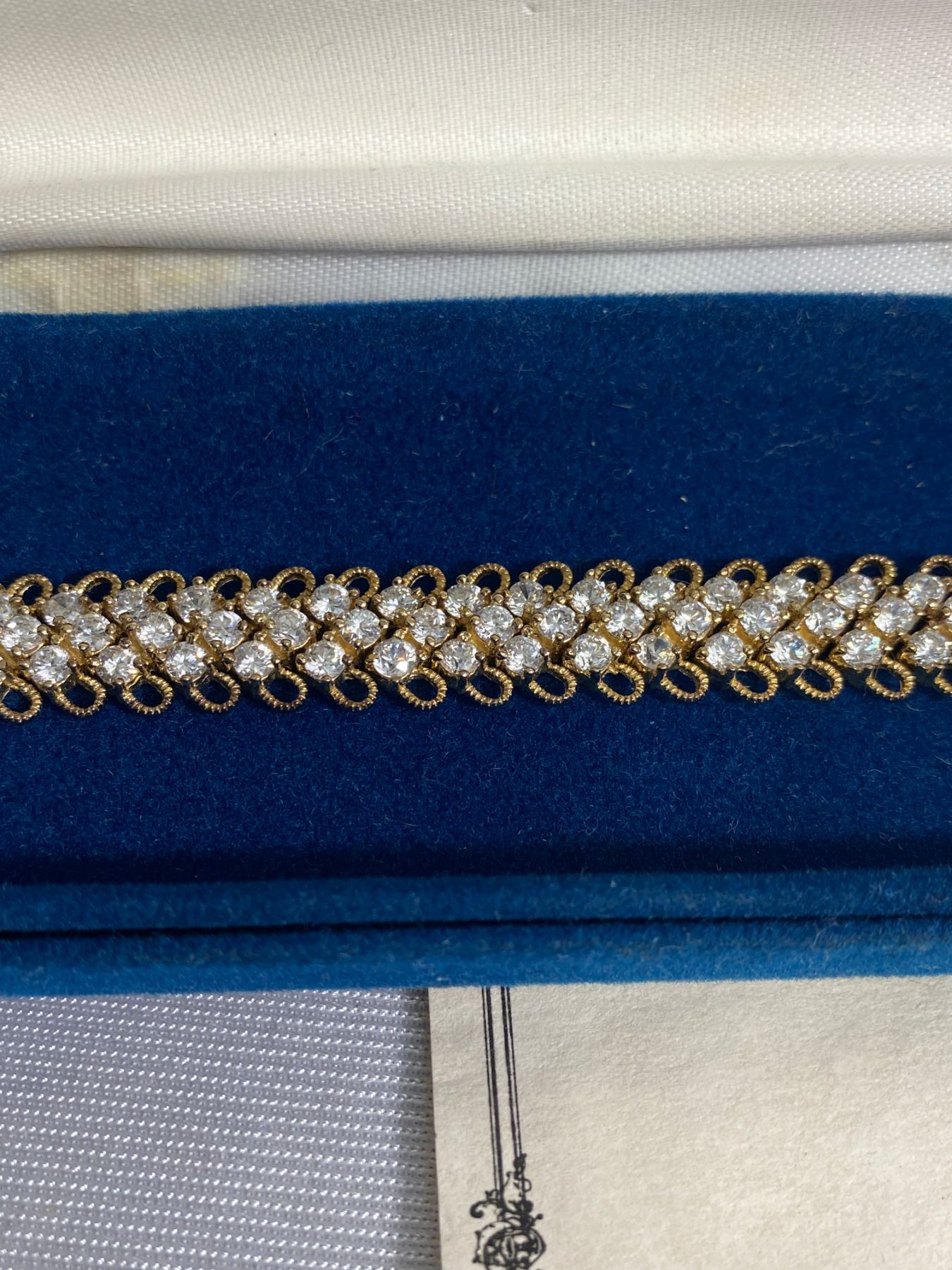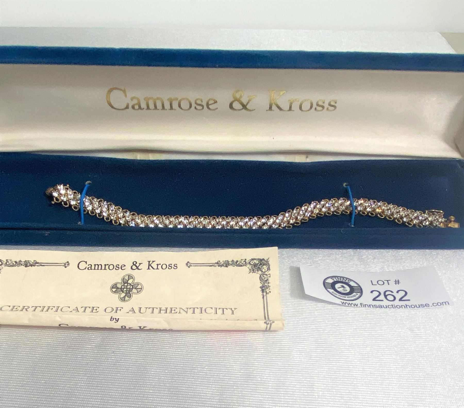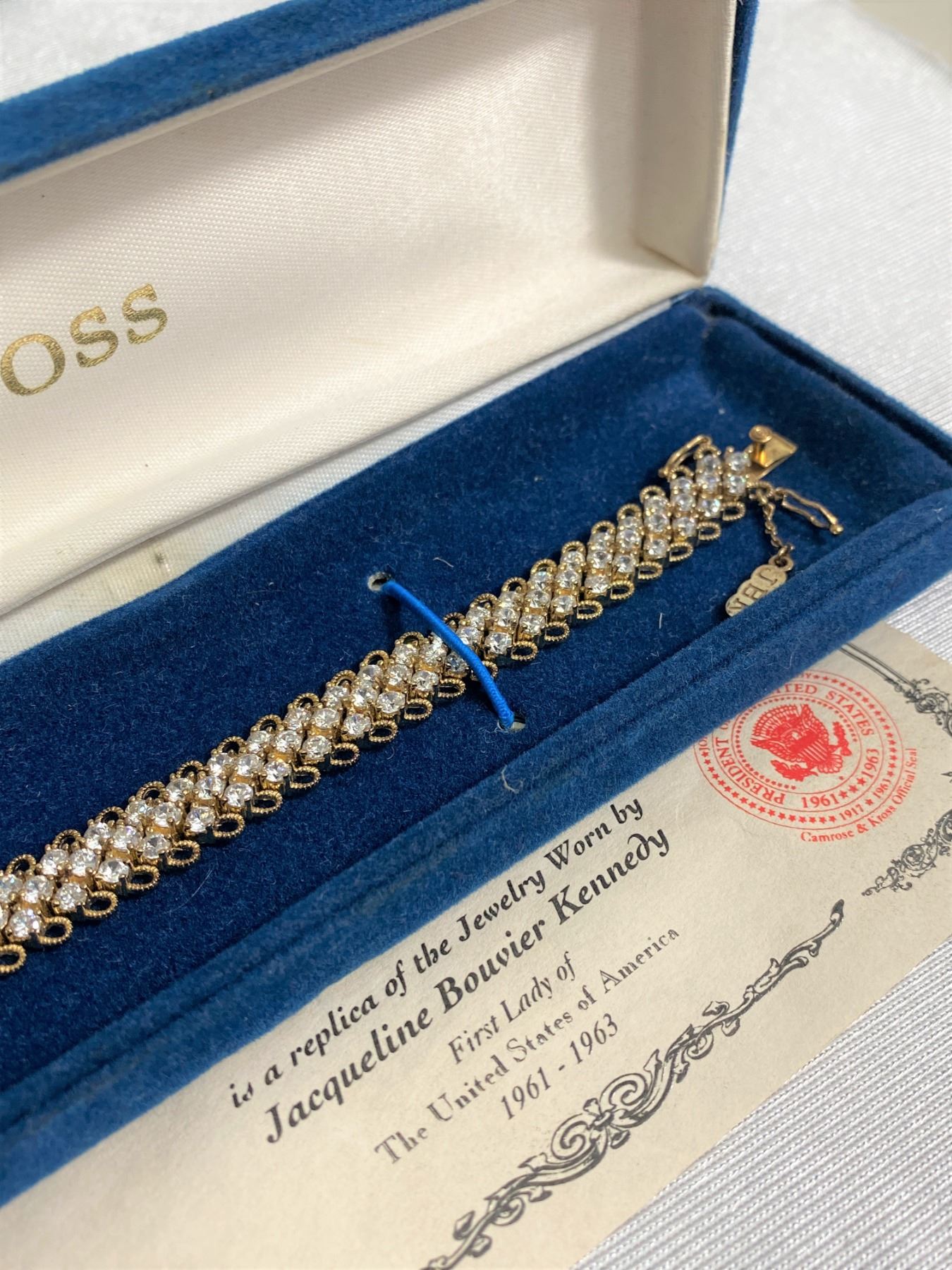 Camrose & Kross. Jackie Kennedy Gorgeous 18k Gold Plated over Sterling Silver Crystal Bracelet. Marked 925 JBK. Original Box and Certificate. Length 8" Weight 25.3gr