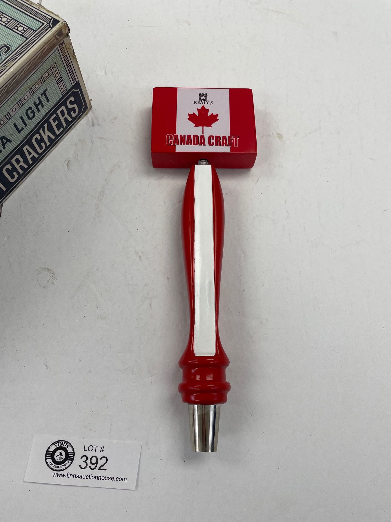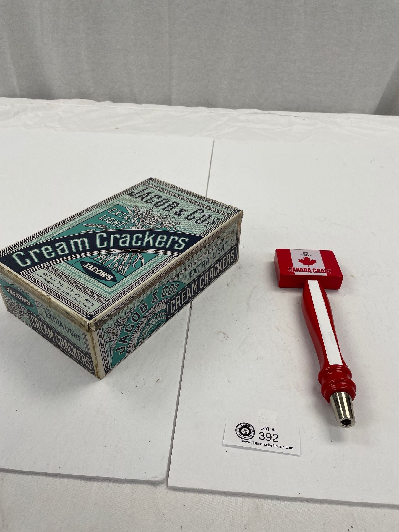 Canada Flag Beer Tap Unused and Jacob and Co. Cream Crackers Tin