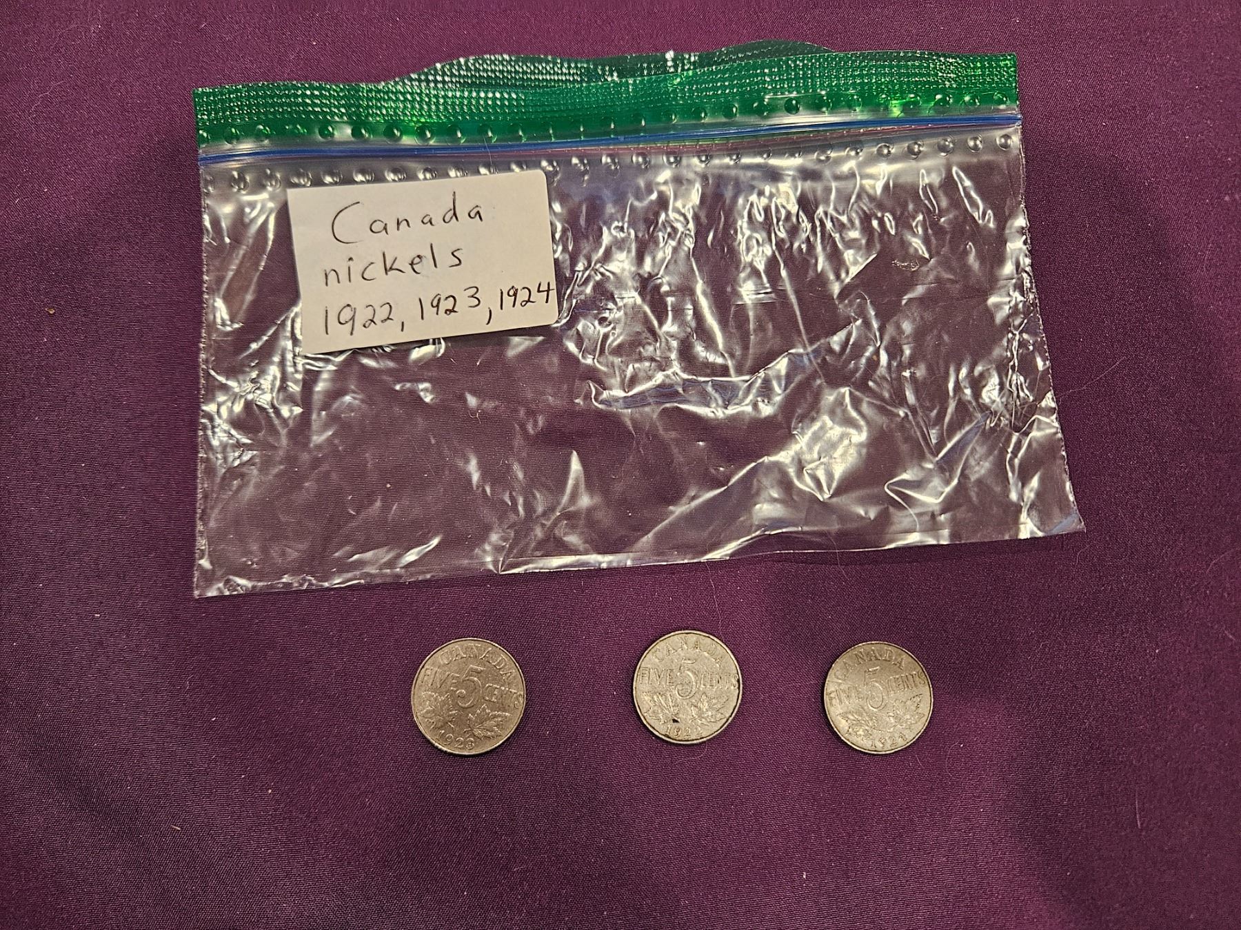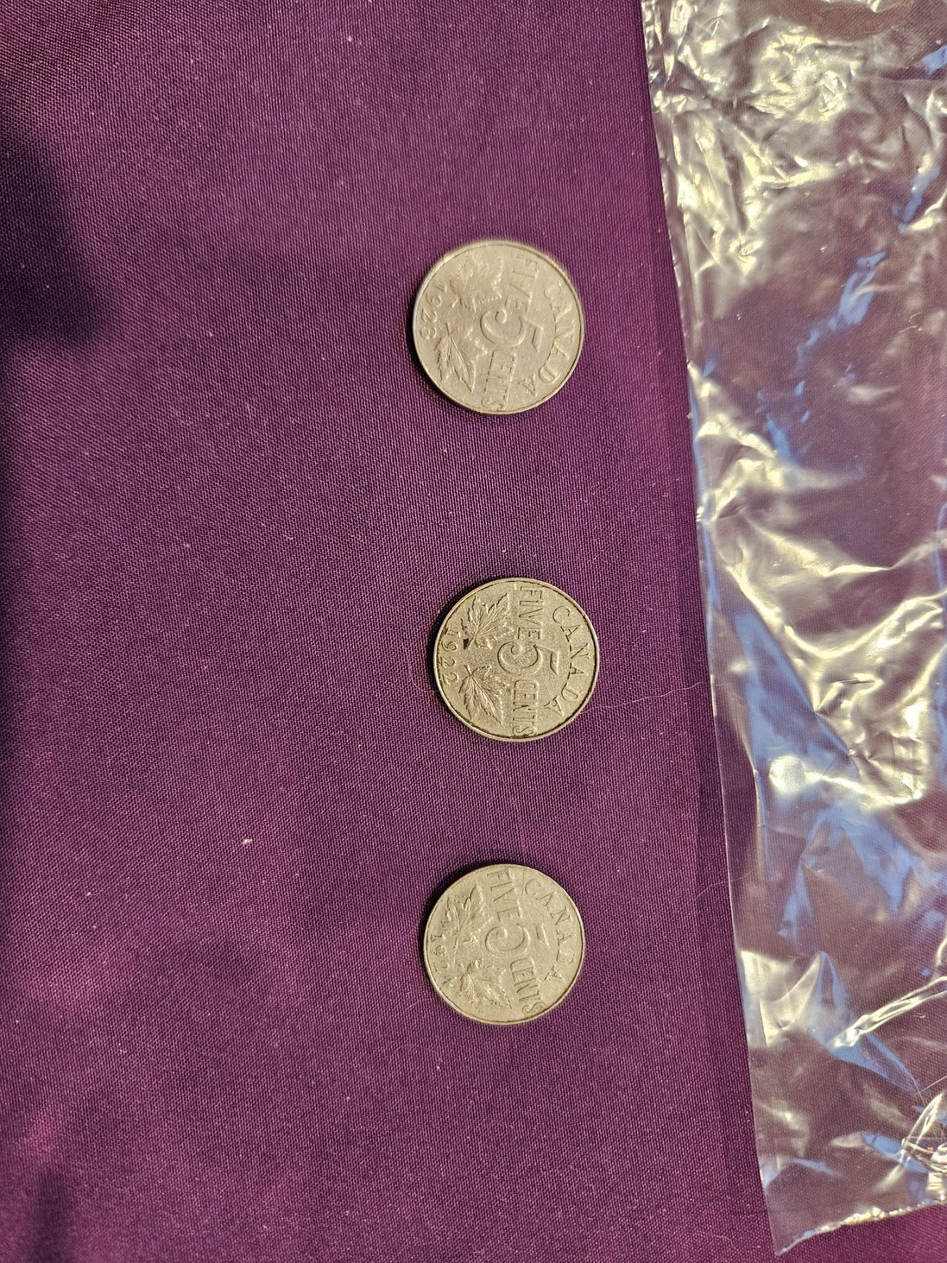 1922, 23 & 24 Canada Nickels