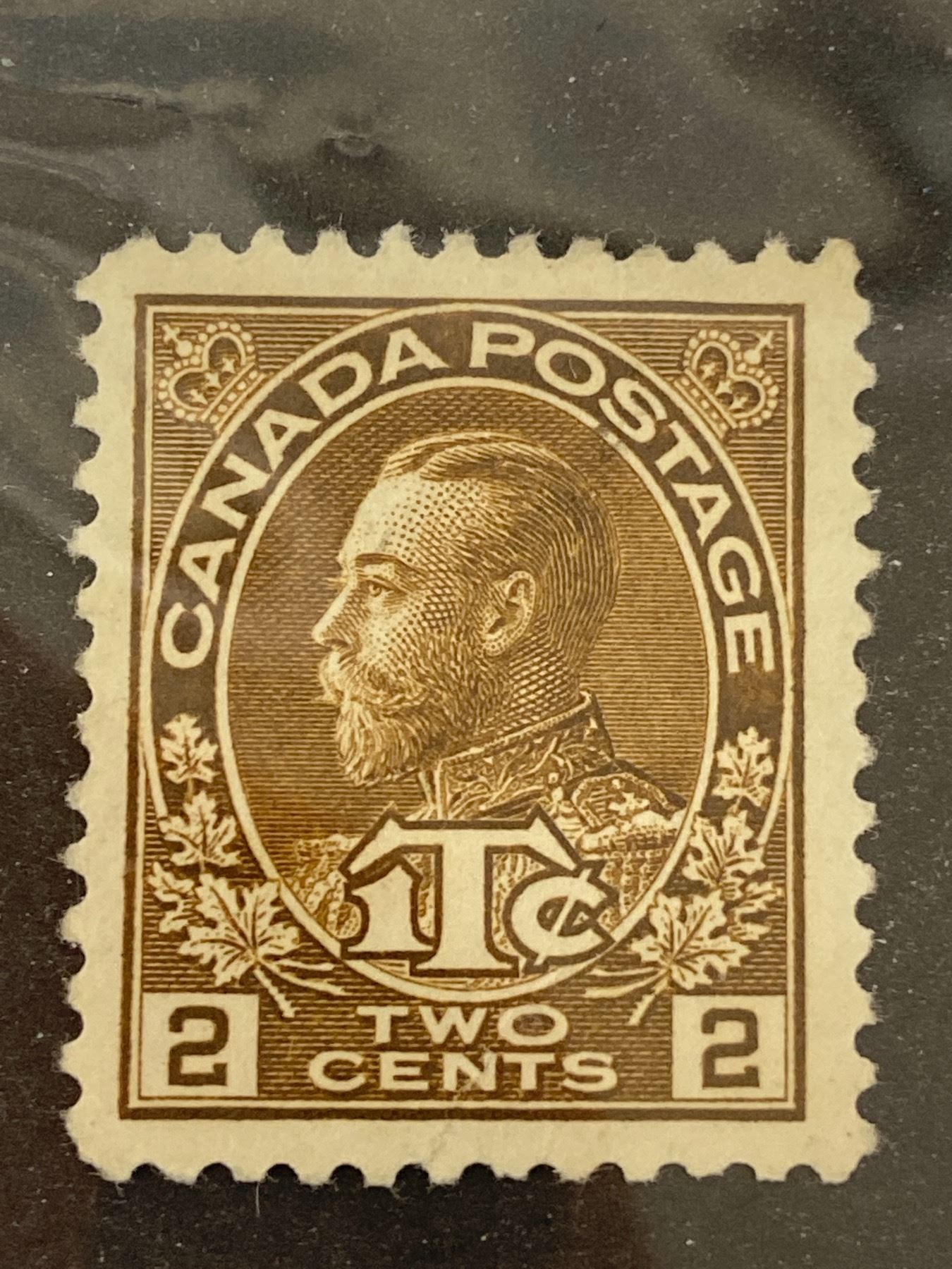 Canada Postage Stamp George V- War Tax stamp 1Tc 2 cents VF