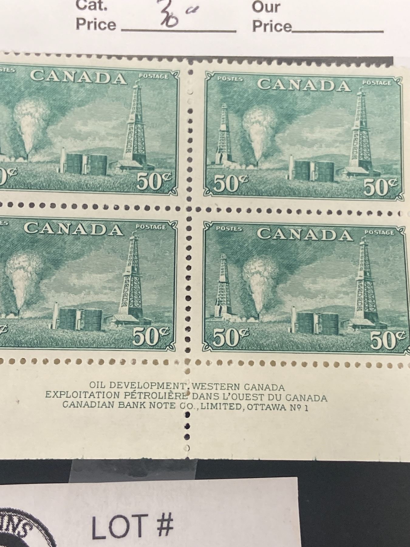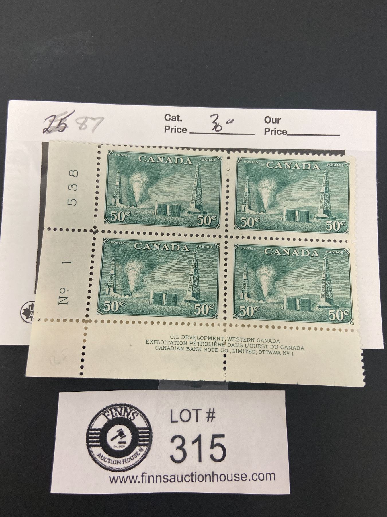 Canada Stamps #294 Plate Block 50 cent Oil Wells ( 1950) MNH