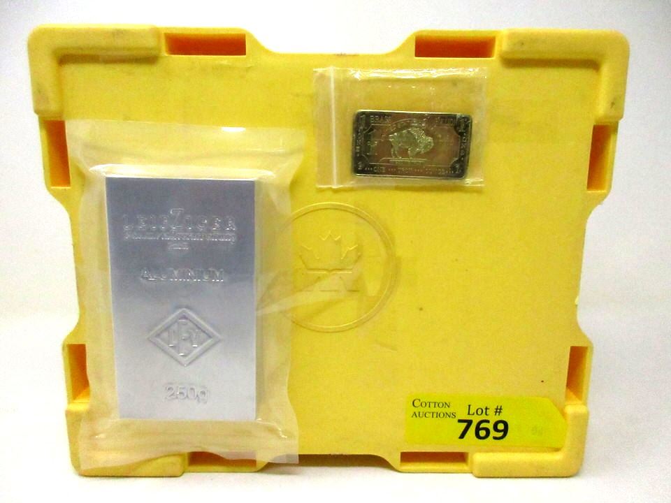.999 Fine Aluminum 250 gram LeipZiger bar, and 1 Oz. .999 Fine Brass Buffalo bar.
