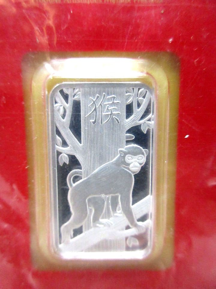 The bar is a .999 Fine Silver Year of the Monkey bar in mint sealed package.