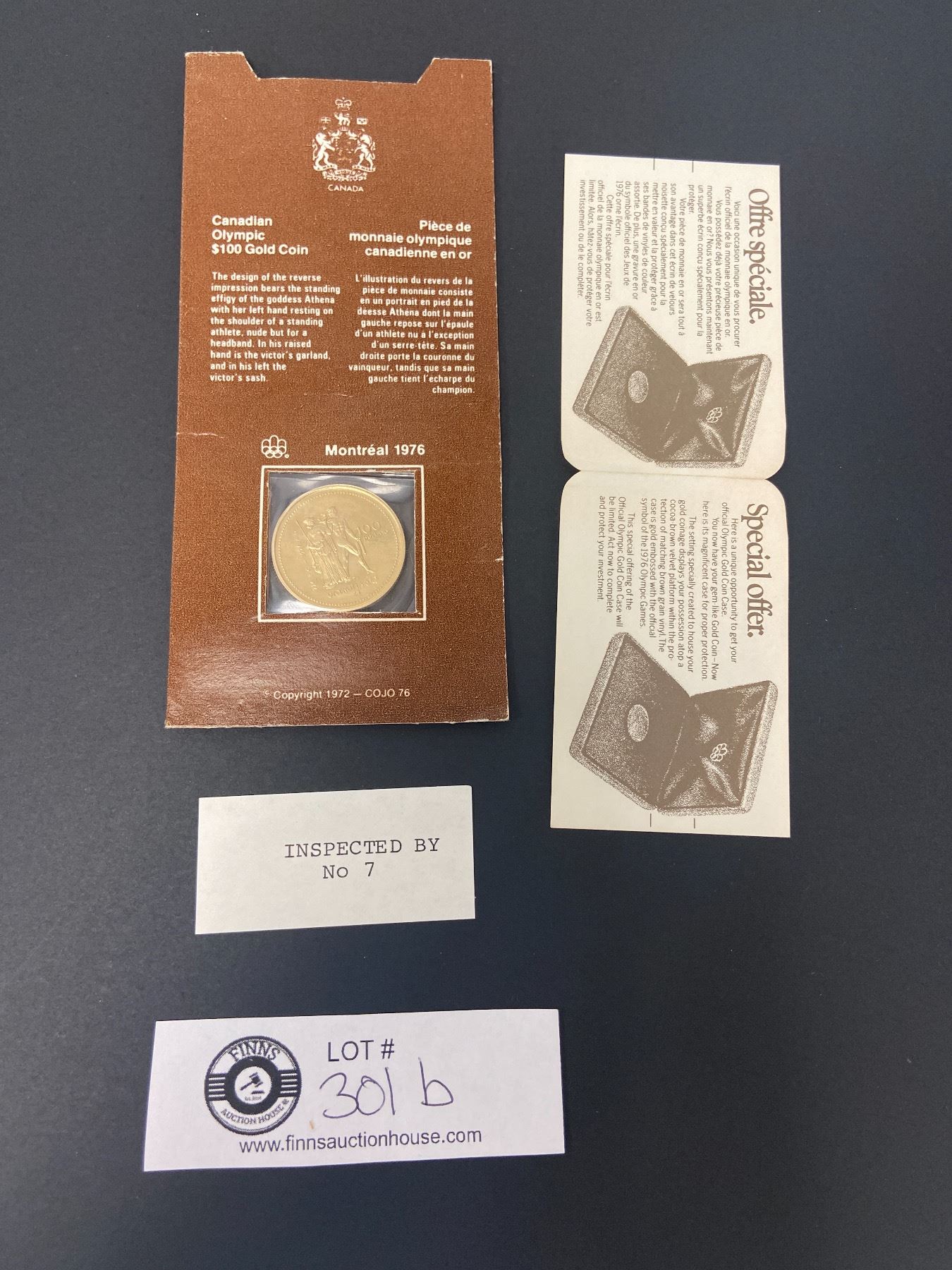 Canadian Olympic $100 Gold Coin 14k Montreal 1976 In Original Package 1/4 oz Gold