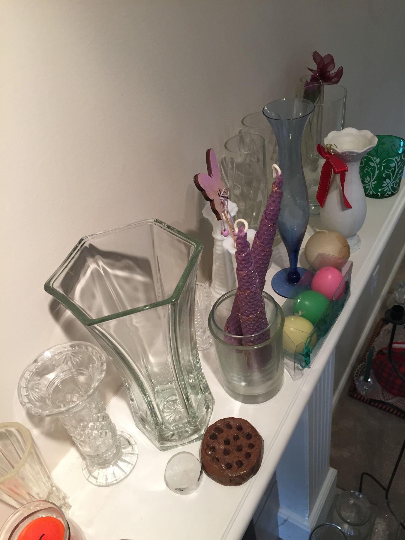 Lot includes candles, candle holders, artificial flowers and vases tallest is 10". Bring packing materials & come to pickup at Category A time slot, (9:00 am - 10:00 am)