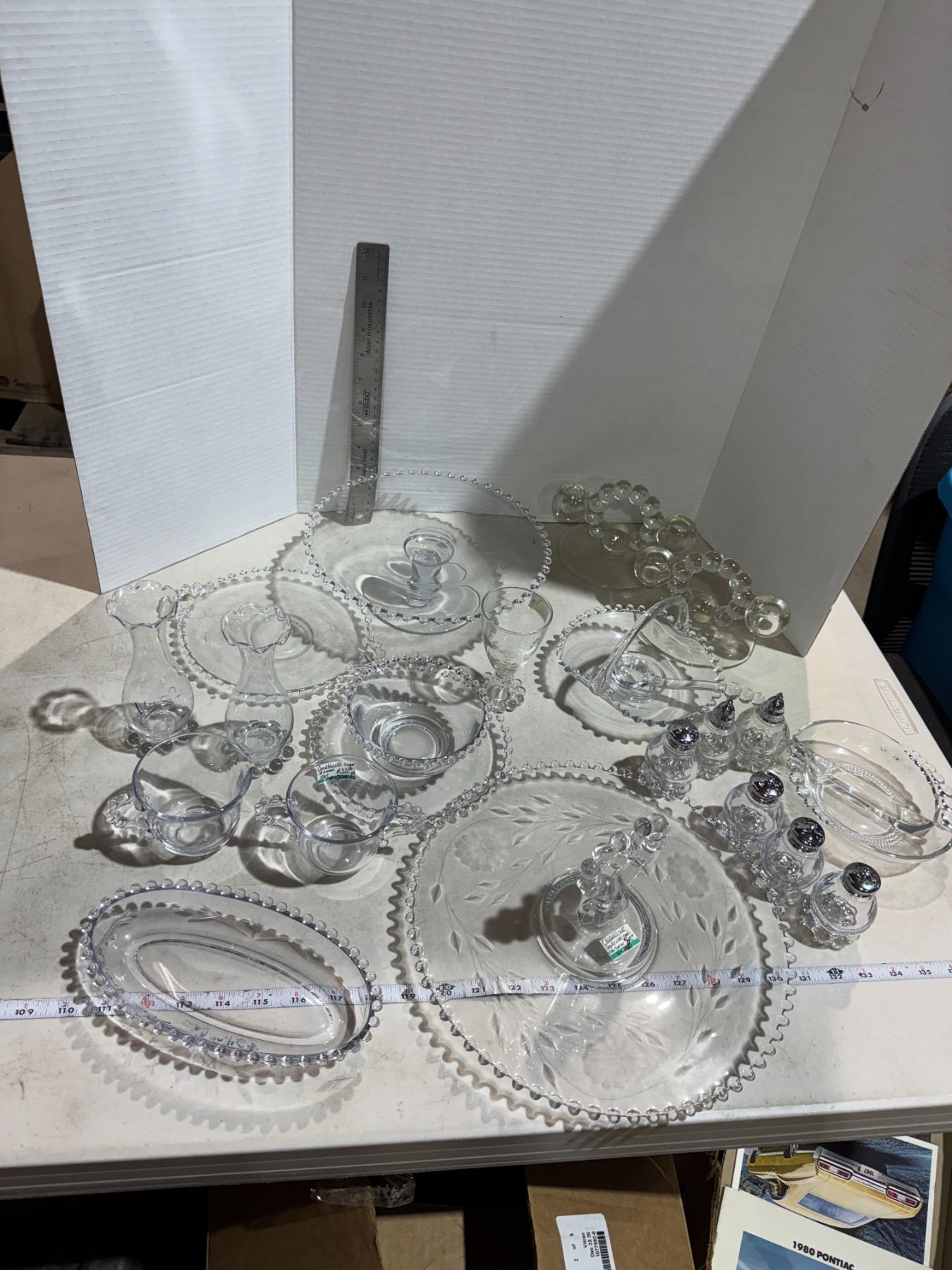 Candlewick dishes, vases, salt, and pepper, shakers, etc.