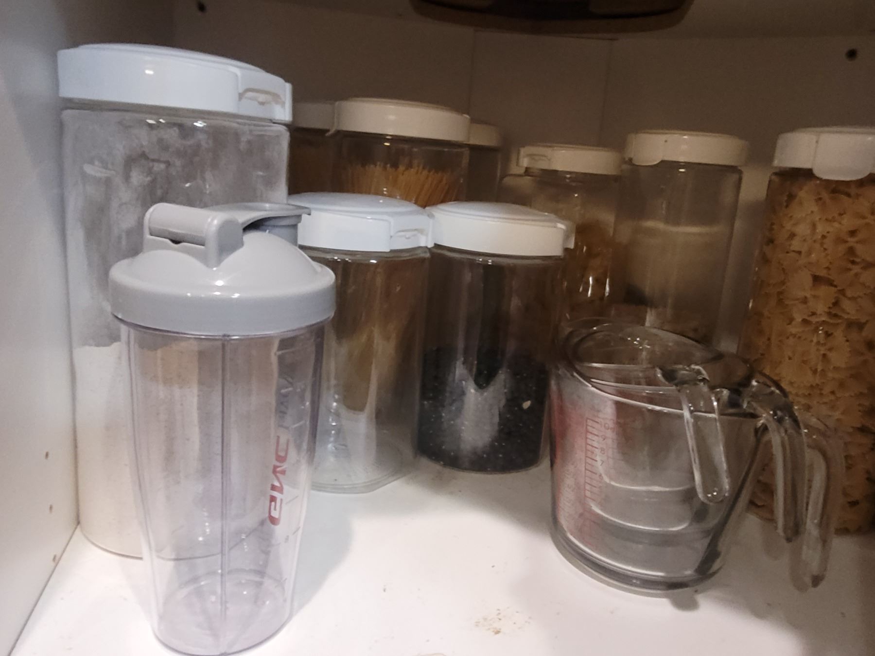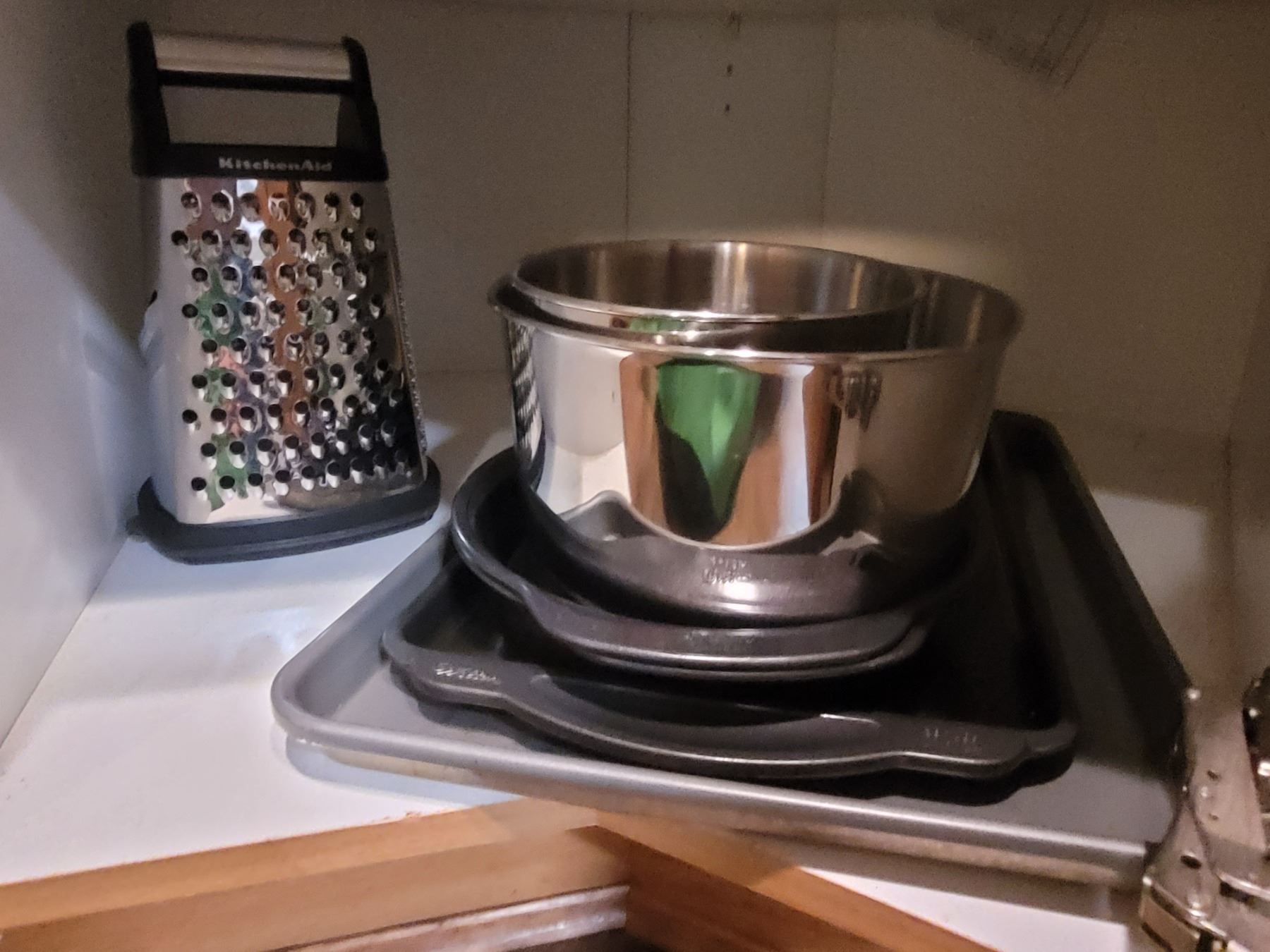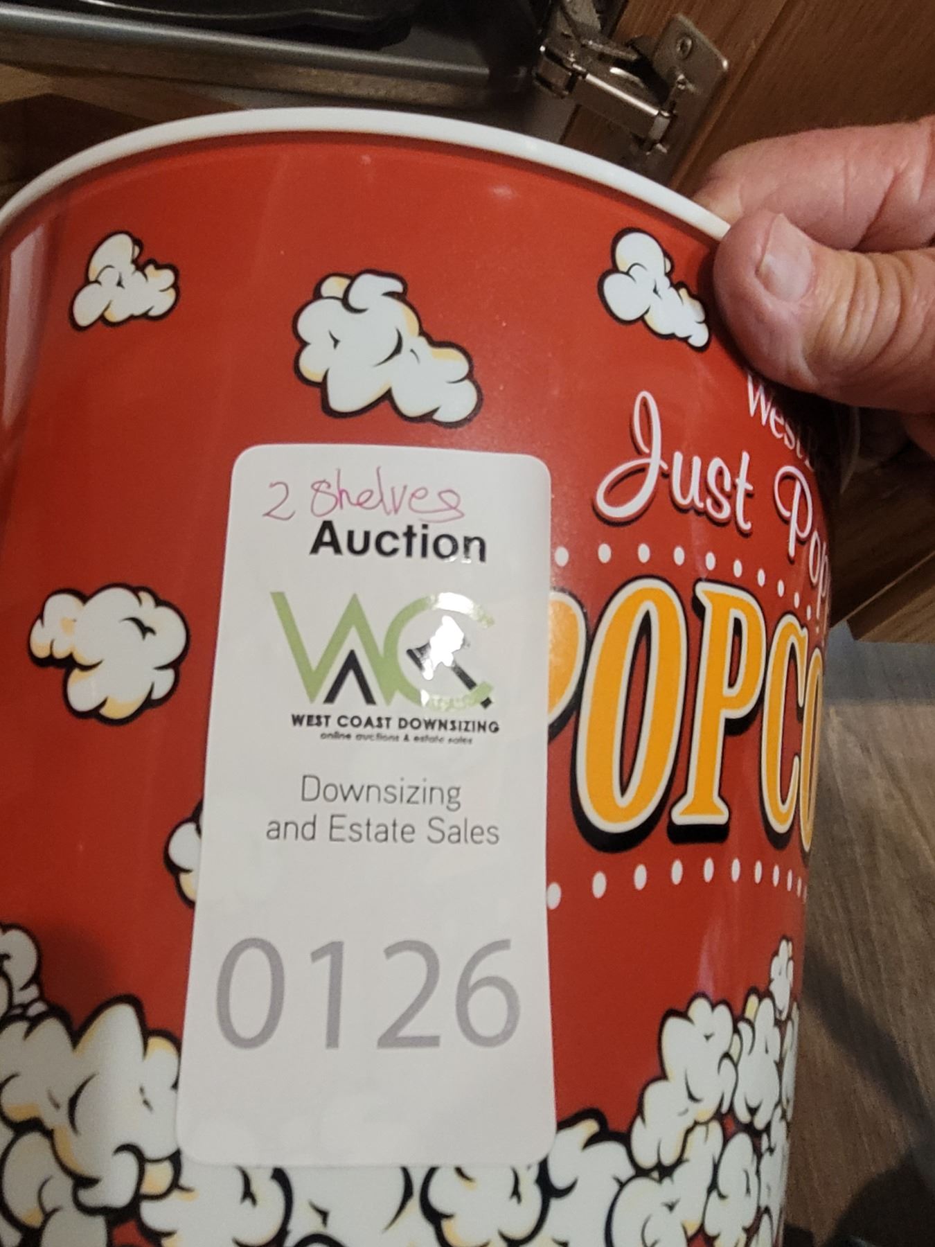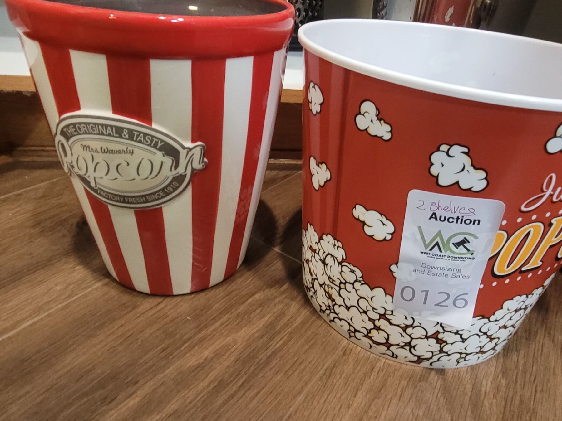 Baking sheets, popcorn bowls, large selection of plastic Cannisters, Pyrex measuring cups, grater. Pick up 9-10