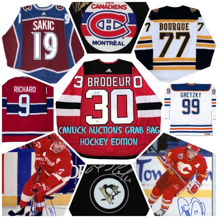 Each bag will contain a minimum of an autographed hockey jersey, photo, and puck and will have a retail value of at least $349.* Bonus items will also be included arbitrarily.