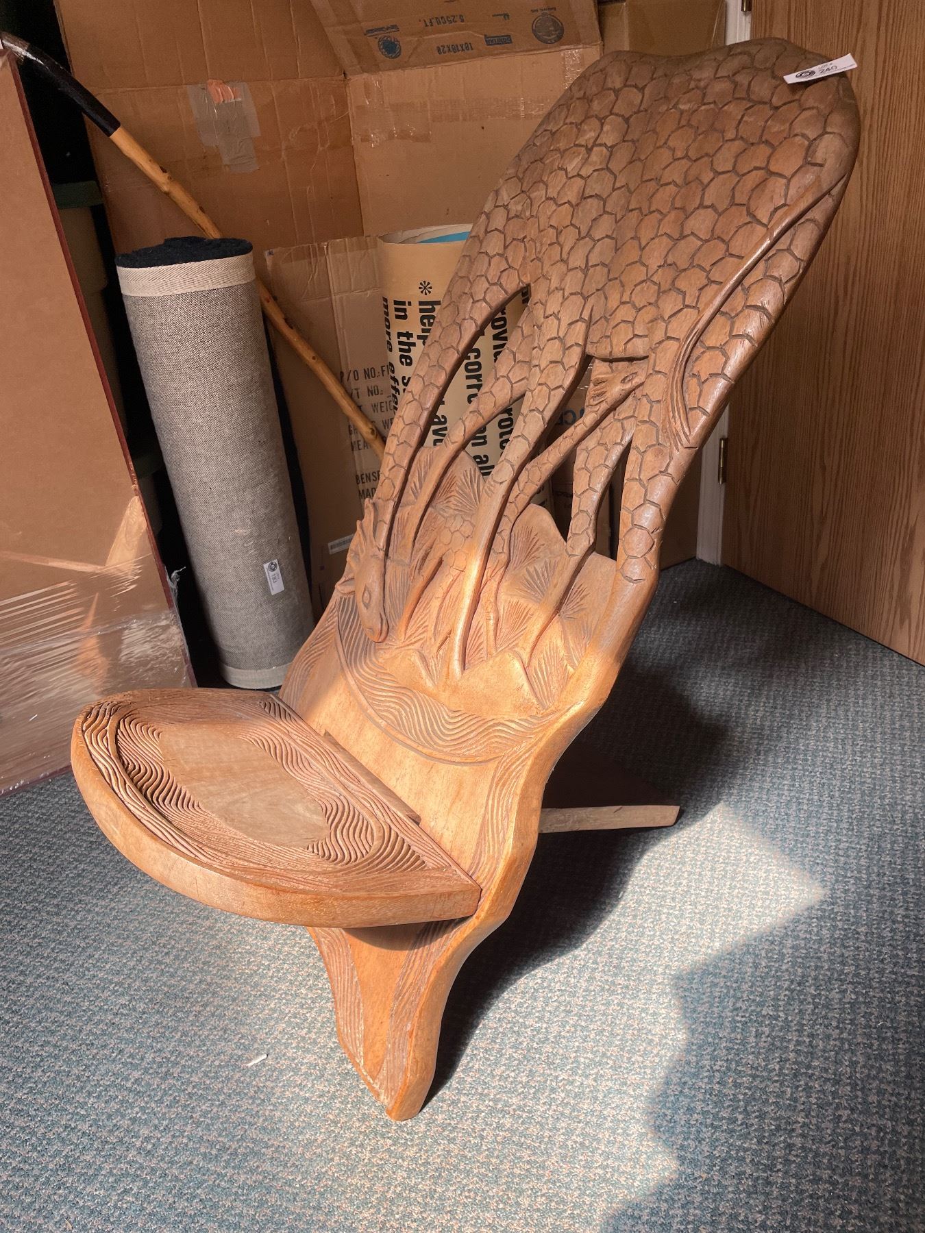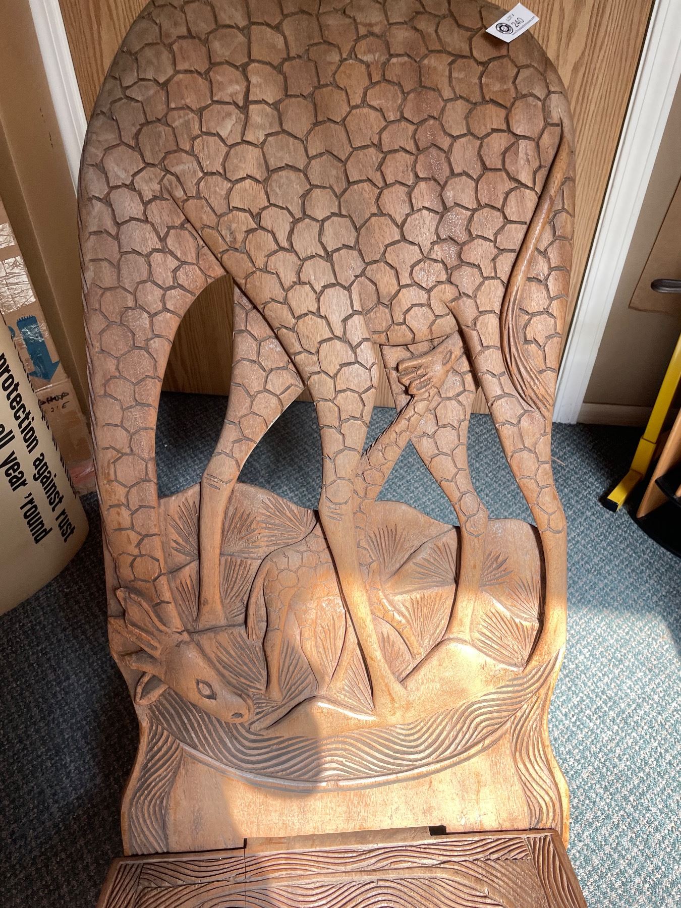Carved African 2 Pc. Birthing Chair Giraffe Motif