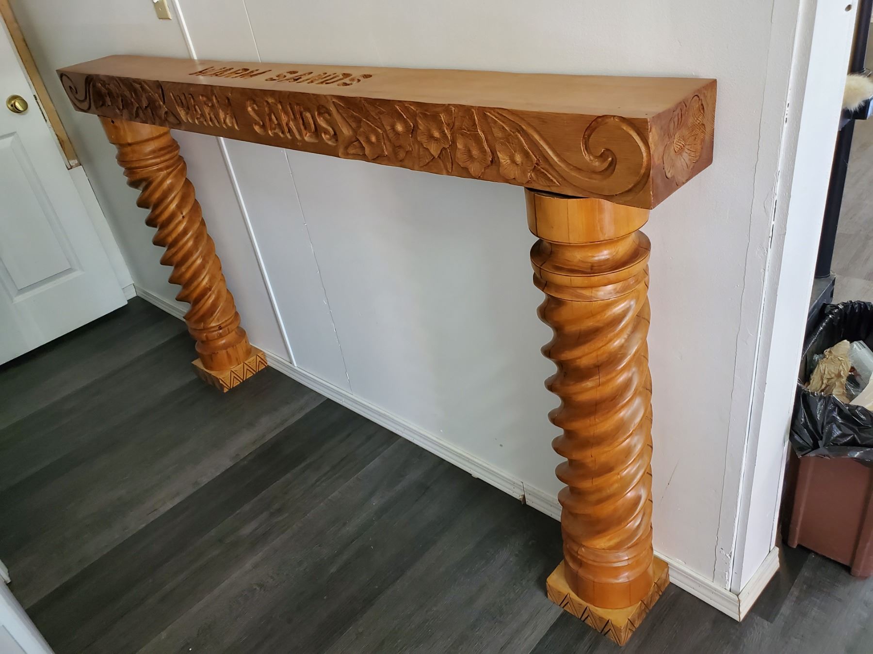 Carved Fireplace Mantel "Warms Sands" -- World Famous Signed Paul Bourbeau Carvings -- 17% Buyer Fee. Payment Processed through Live Auction World ( Visa or Master Card ) pick up Saturday, or Tuesday