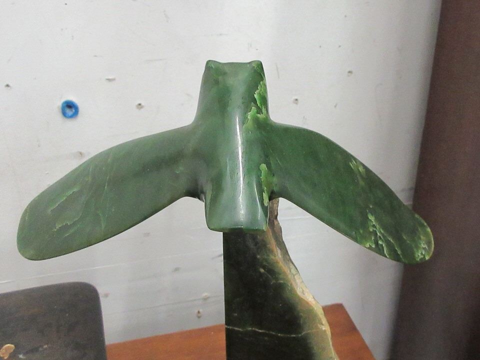 10" tall on a 3" x 3" base. Owl is 9" wide.