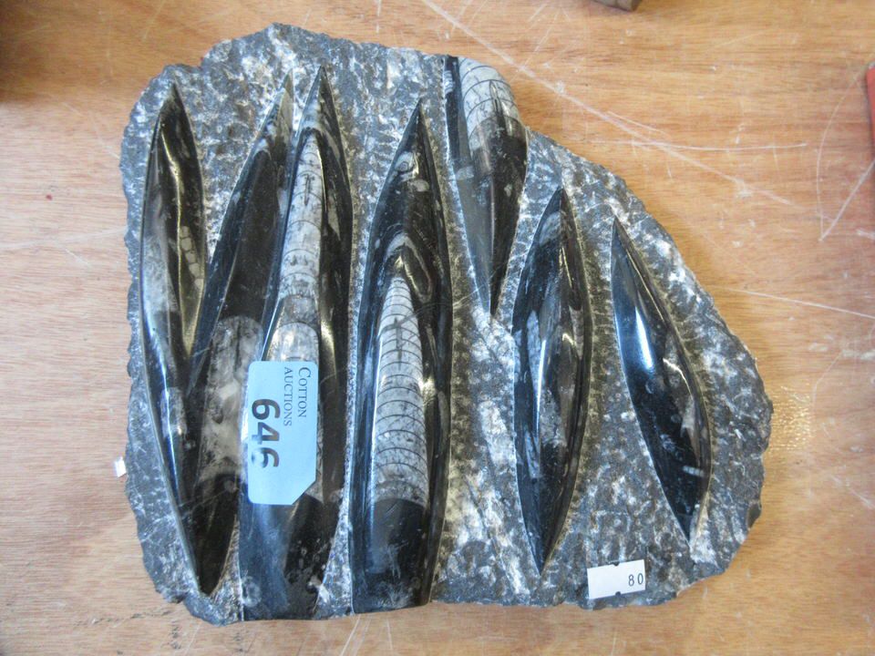 Carved Orthoceras Fossil Art - 2  x 10  x 11