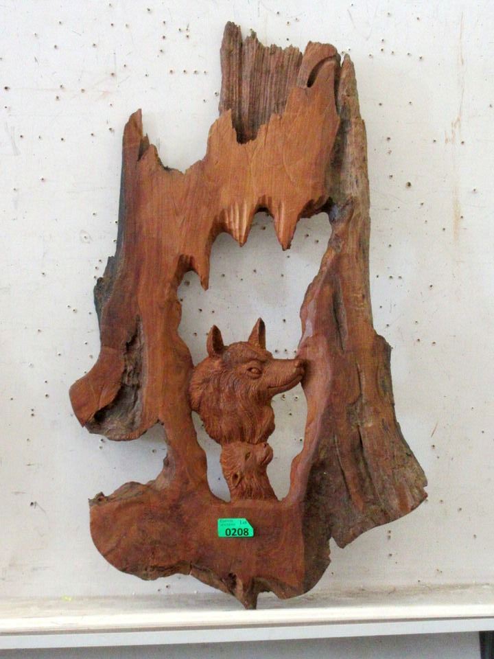 Carved Teak Root  Wolves  Wall Art