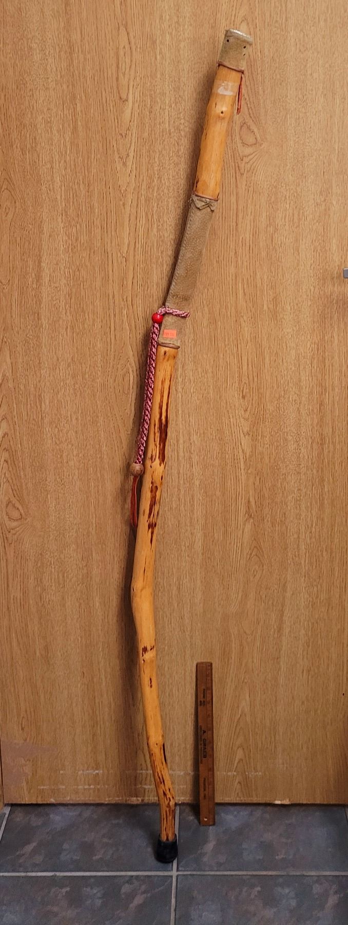Carved Wood Walking Stick w/ Leather Accents