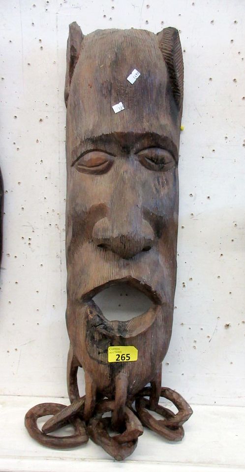 Carved Wood Wall Mask - 6  x 9  x 29  tall