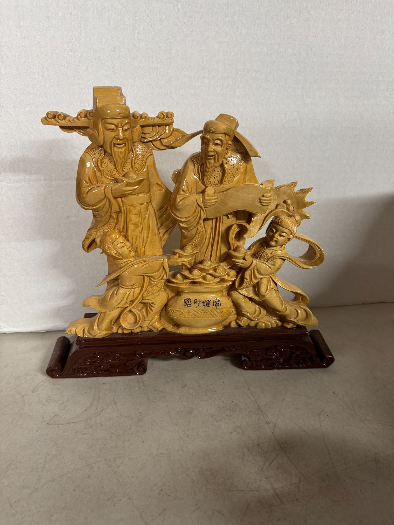 Carved boxwood SANXING sculpture 11 inches
