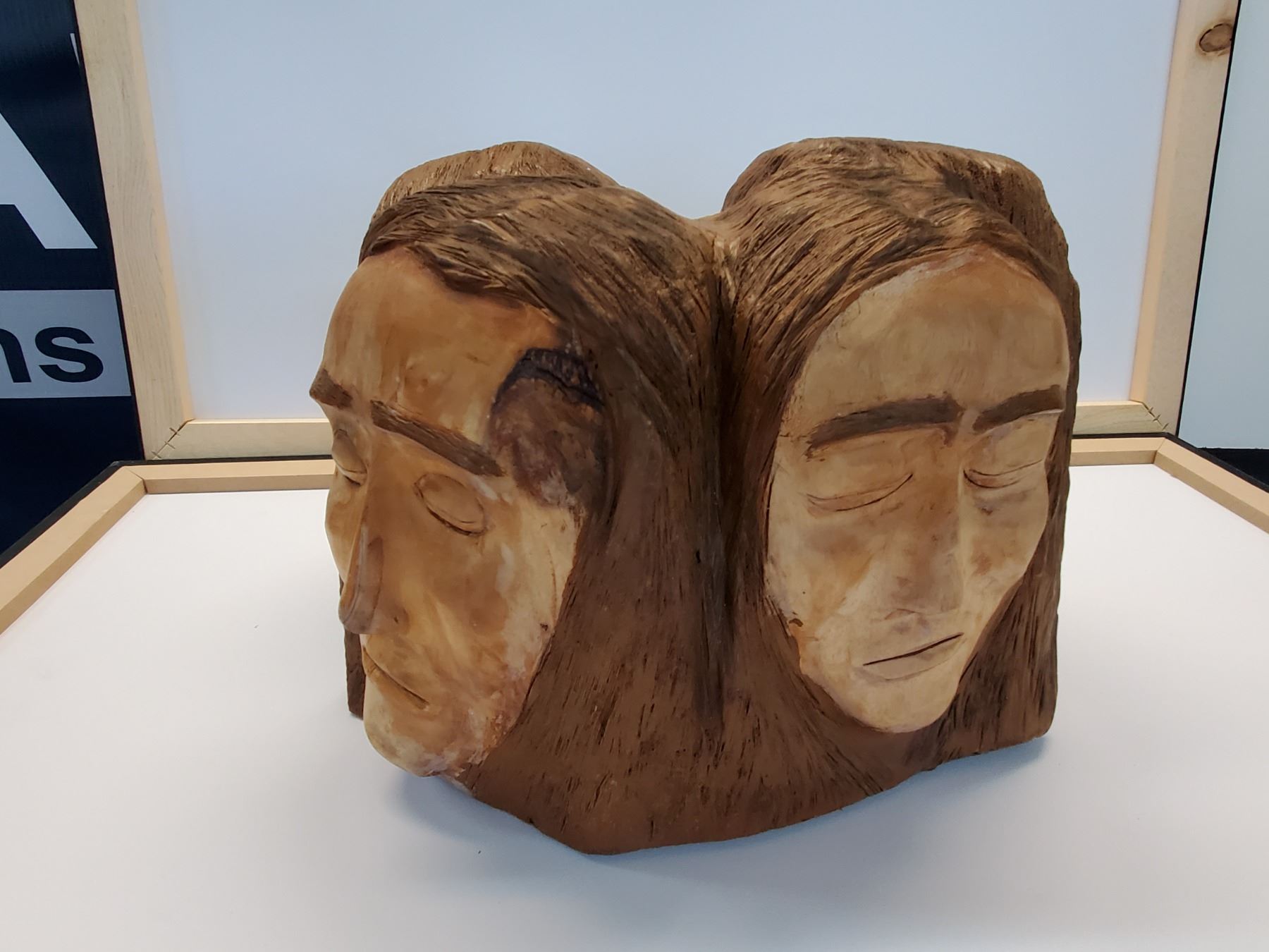 Carving of three heading in 1 block -- World Famous Signed Paul Bourbeau Carvings -- 17% Buyer Fee. Payment Processed through Live Auction World ( Visa or Master Card ) pick up Saturday, or Tuesday