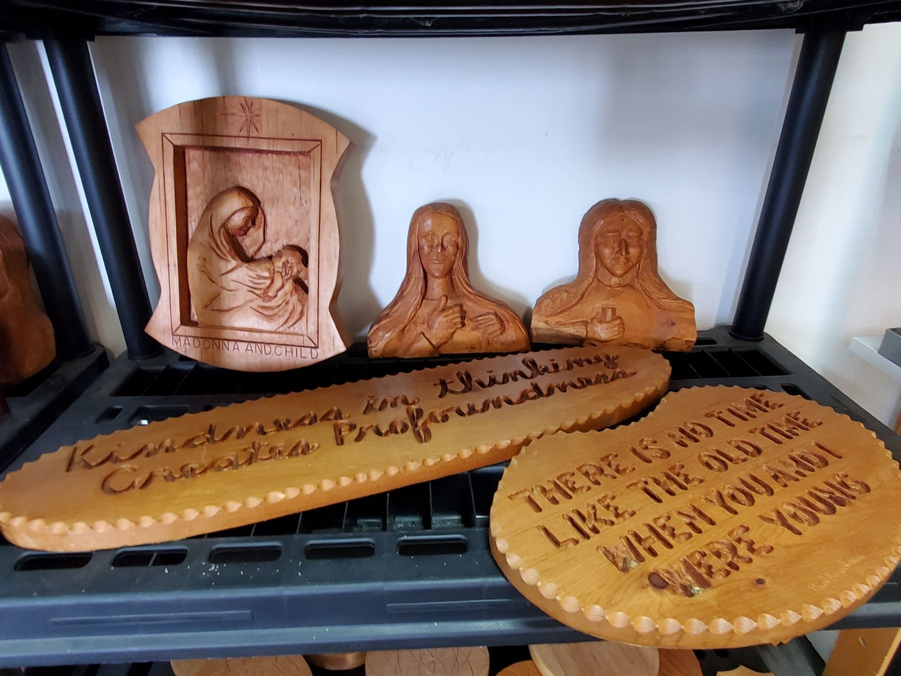 Carvings - Madonna & Child - Man & Lady 7 2 wall hangings -- World Famous Signed Paul Bourbeau Carvings -- 17% Buyer Fee. Payment Processed through Live Auction World ( Visa or Master Card ) pick up Saturday, or Tuesday