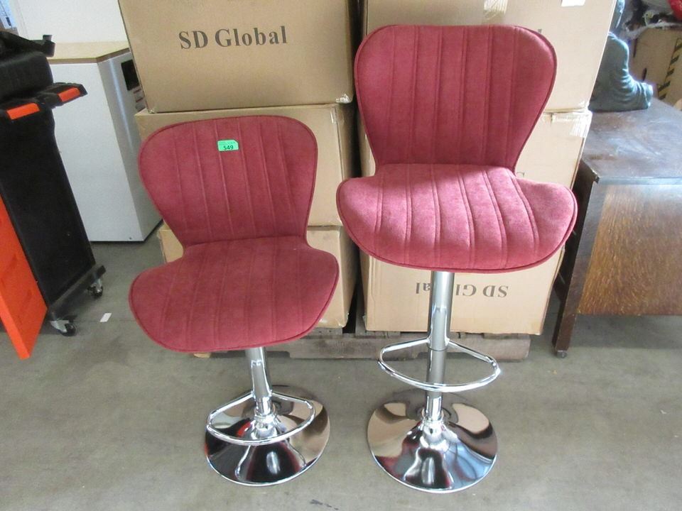 Case of 2 New Hydraulic Burgundy Fabric Bar Stools