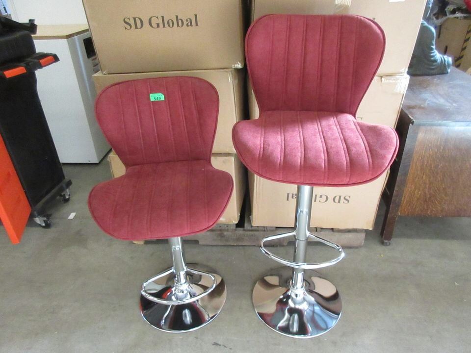 Case of 2 New Hydraulic Burgundy Fabric Bar Stools