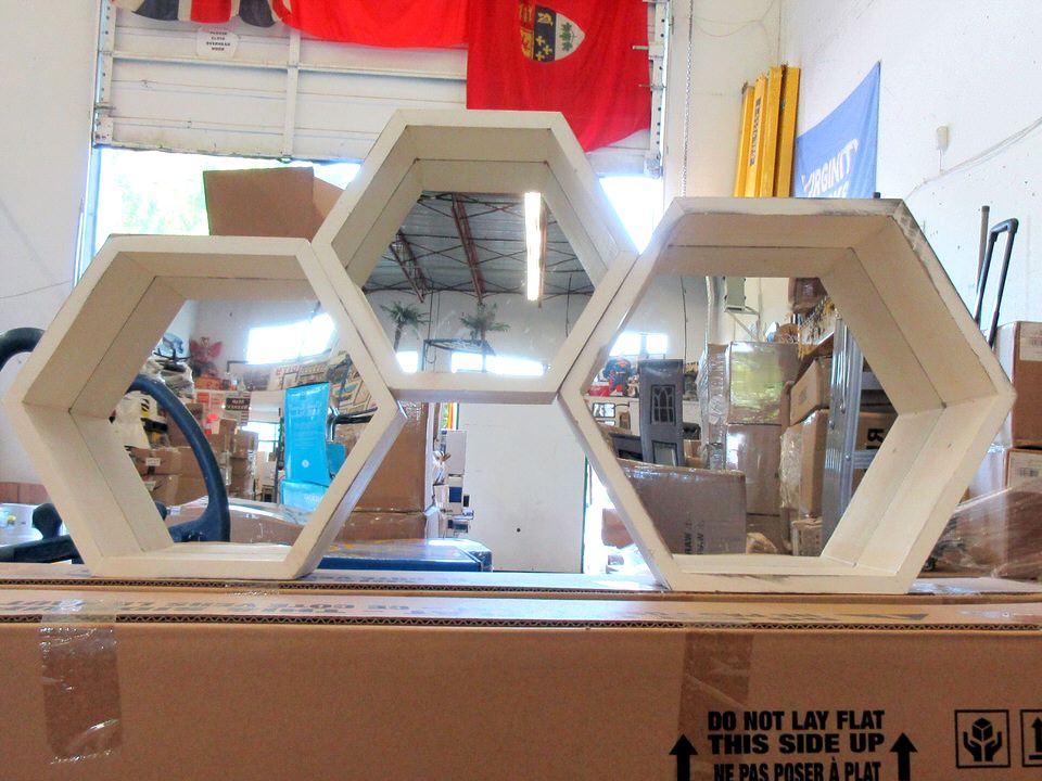 Smallest mirror is 4" D x 10" W x 10" T. Largest mirror in the set is 5.5" D x 14" W x 14" T.