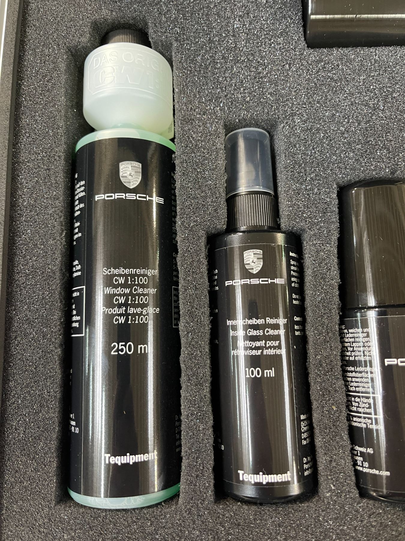 Case of Porshe Cleaning Products - Inside Glass Cleaner, Leather Cleaner, Leather Conditioner, Hard Wax, Etc.
