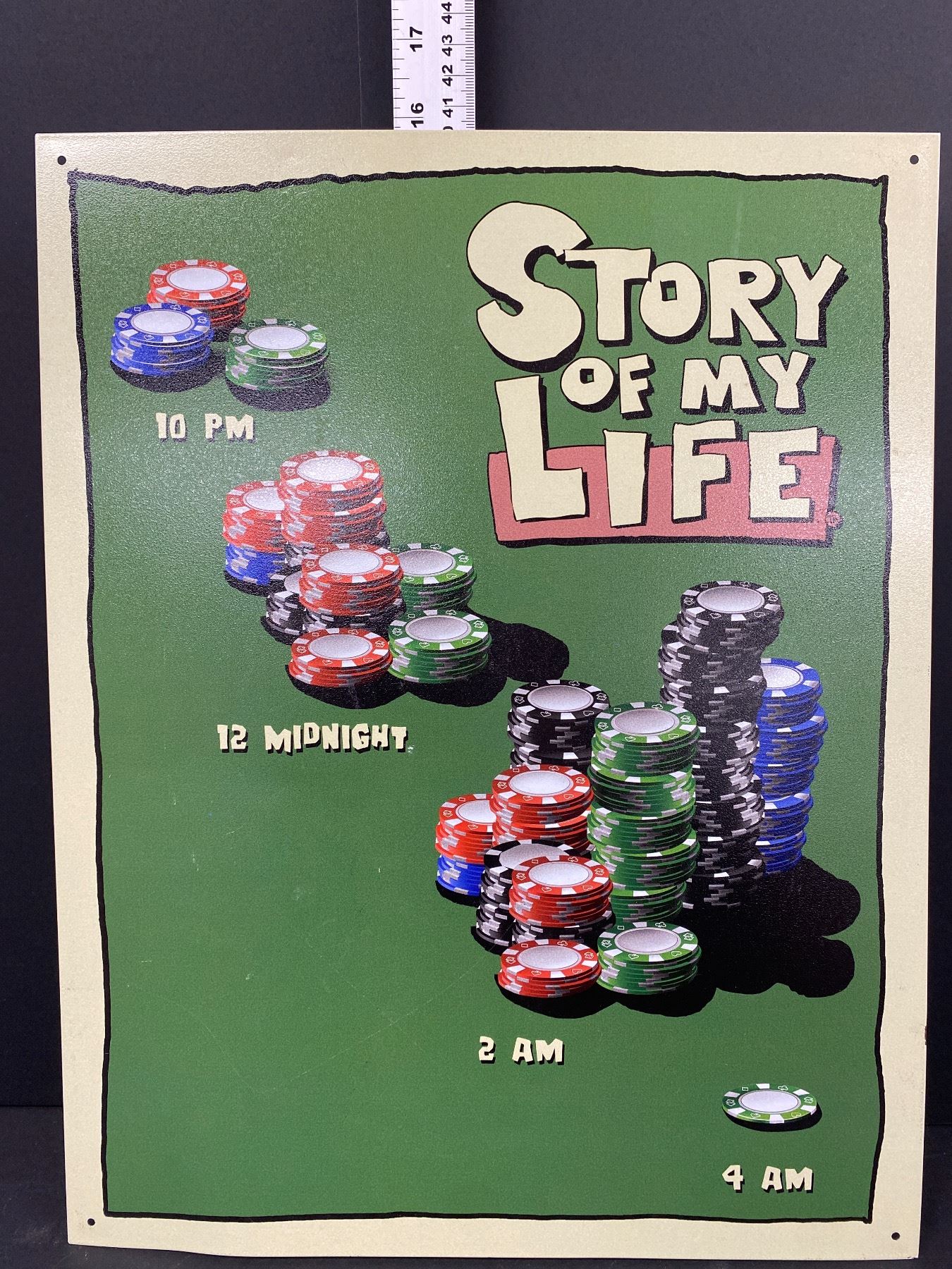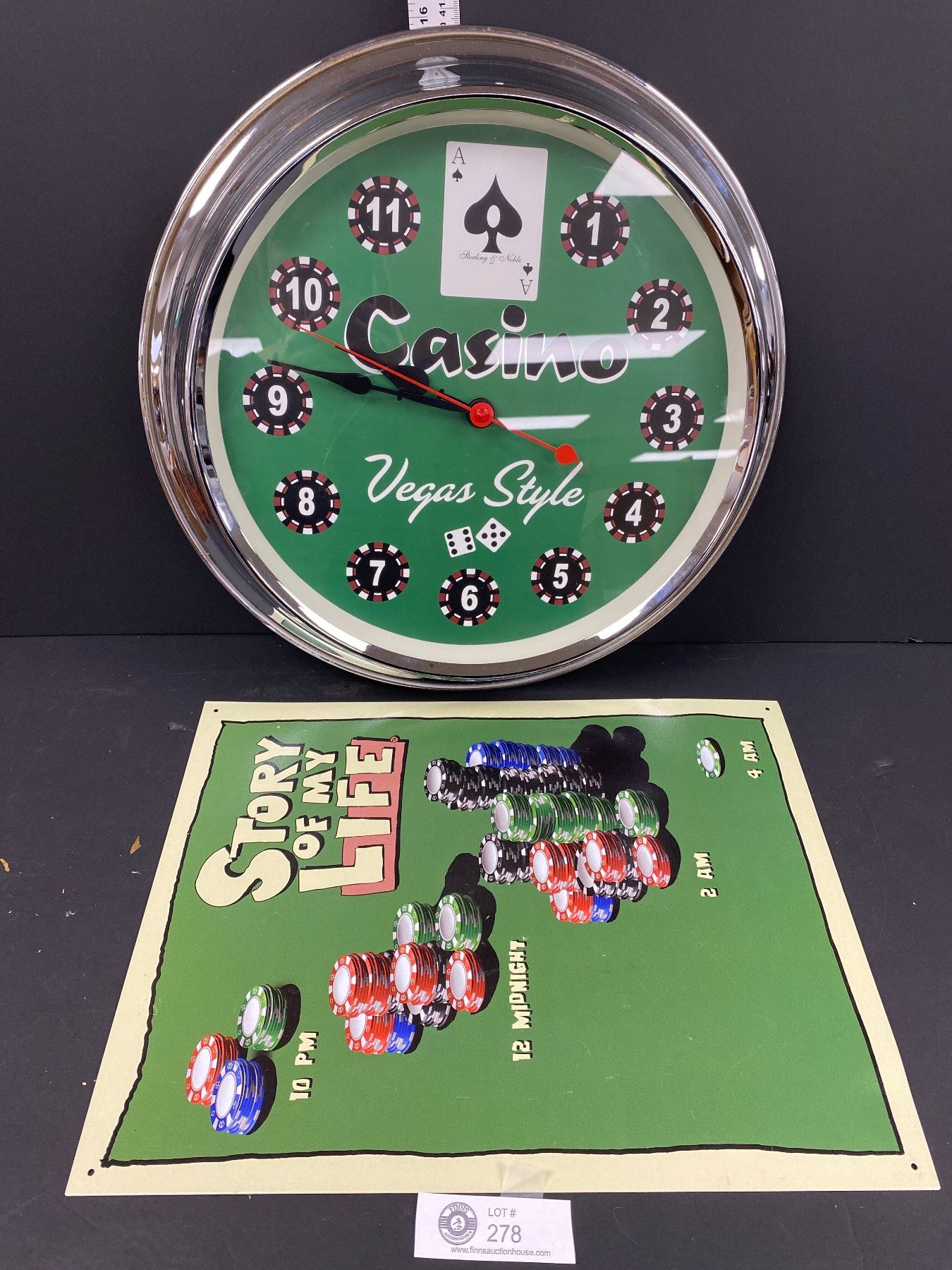 Casino Vegas Style Wall Clock and Story of My Life Tin Sign