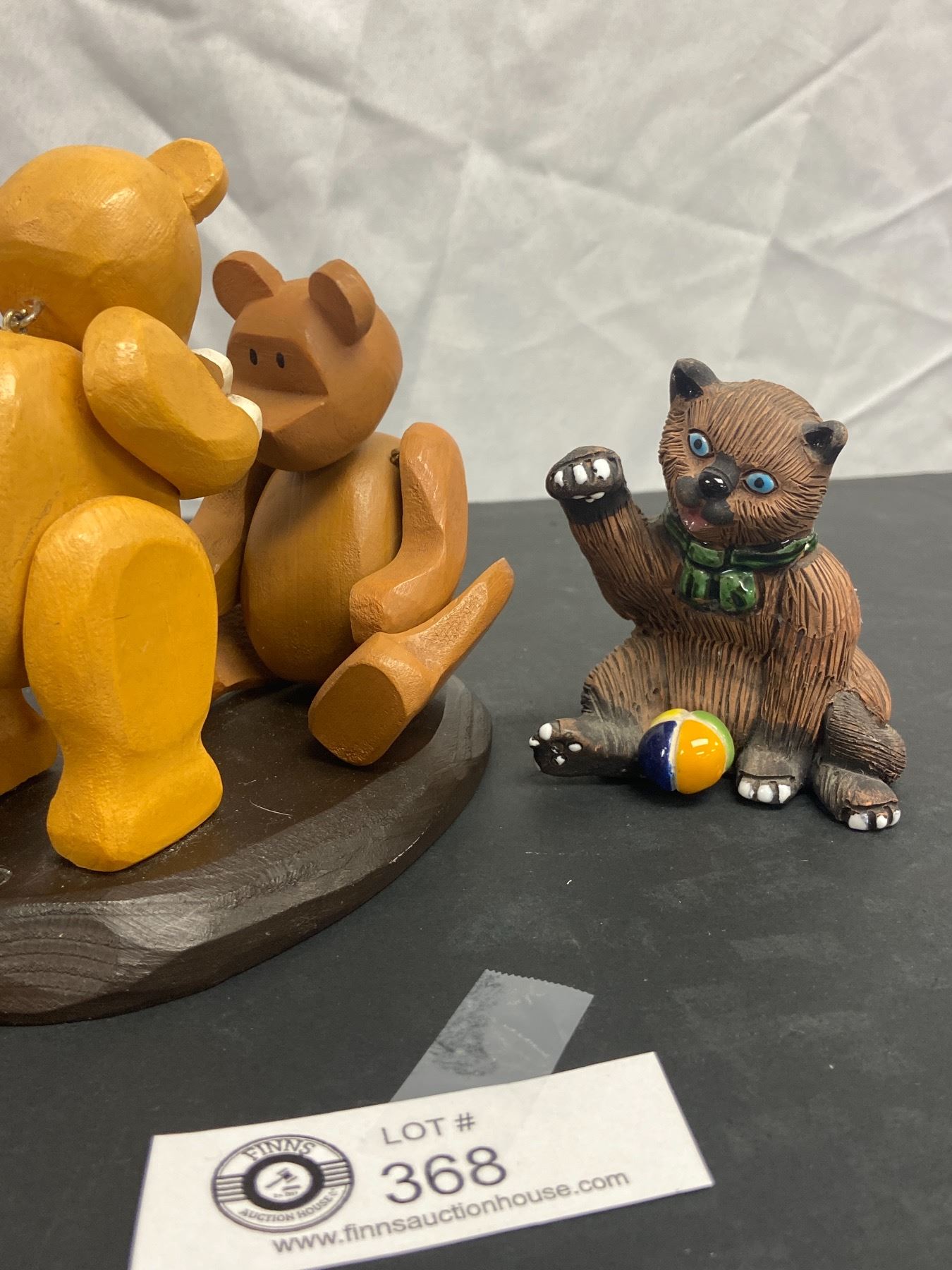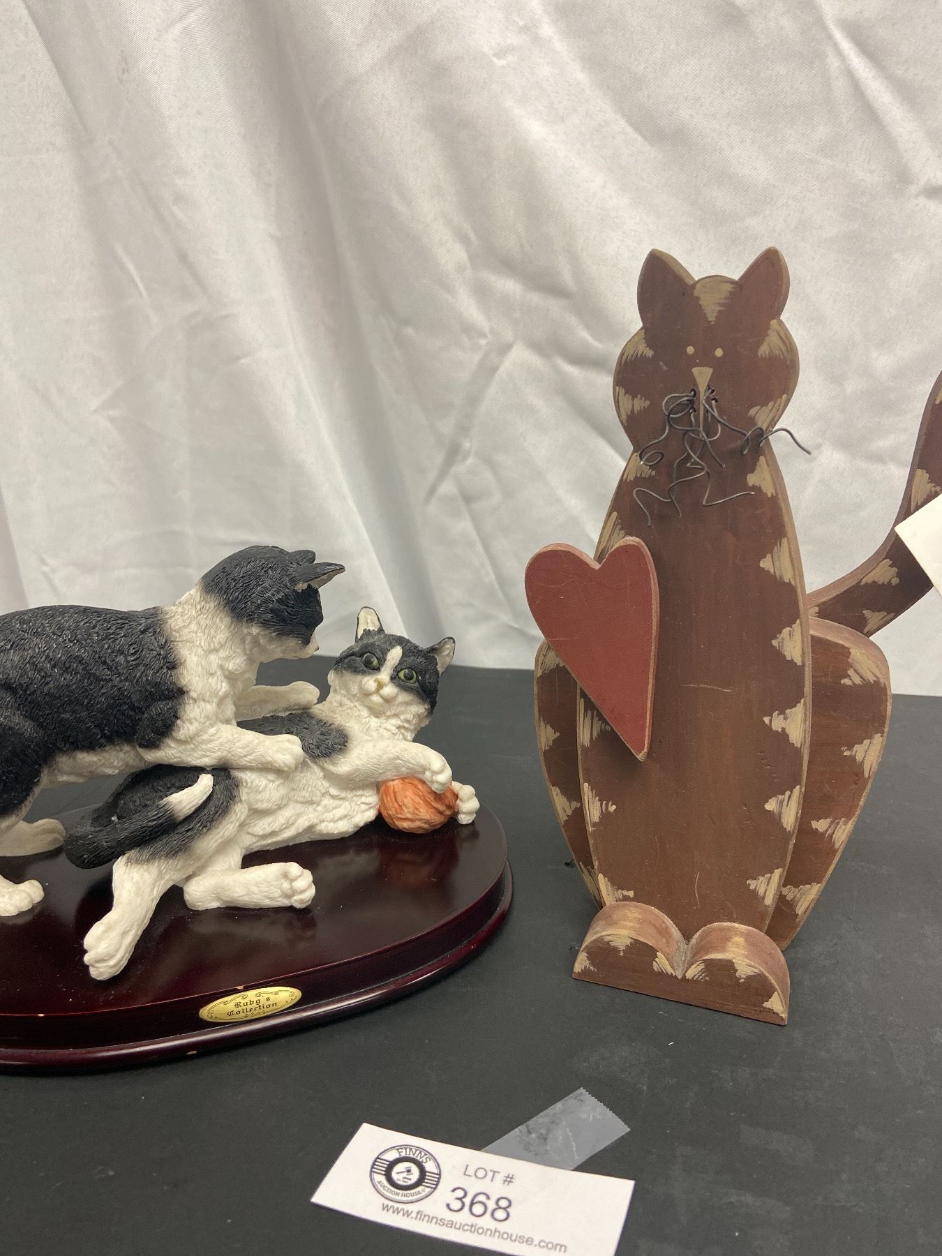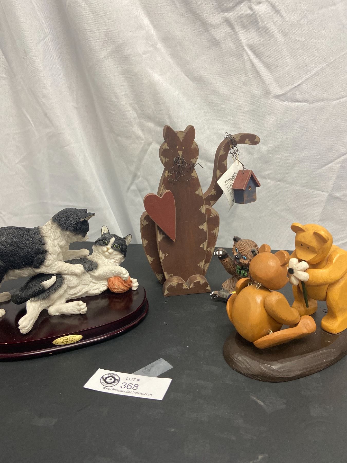 Cat Collectible Lot. Casals Peru, Wood Door Stop, and Articulated Wood Pozy Bears