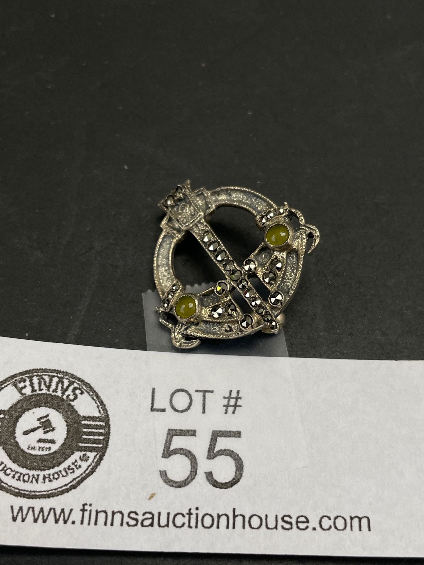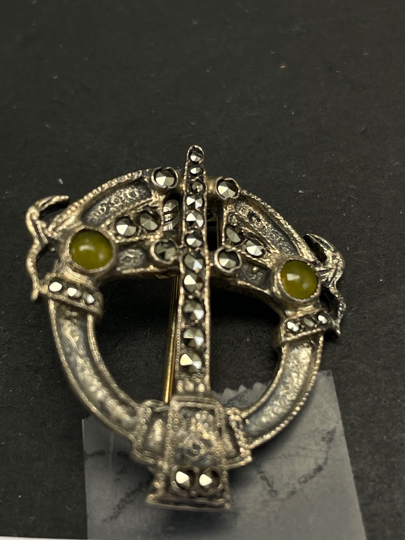 Celtic Brooch/Pin Set with Green Stone and Marcasite