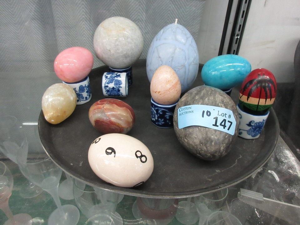 Orb is 3 1/2" diameter. Eggs are ceramic, stone, wood, wax and other materials.