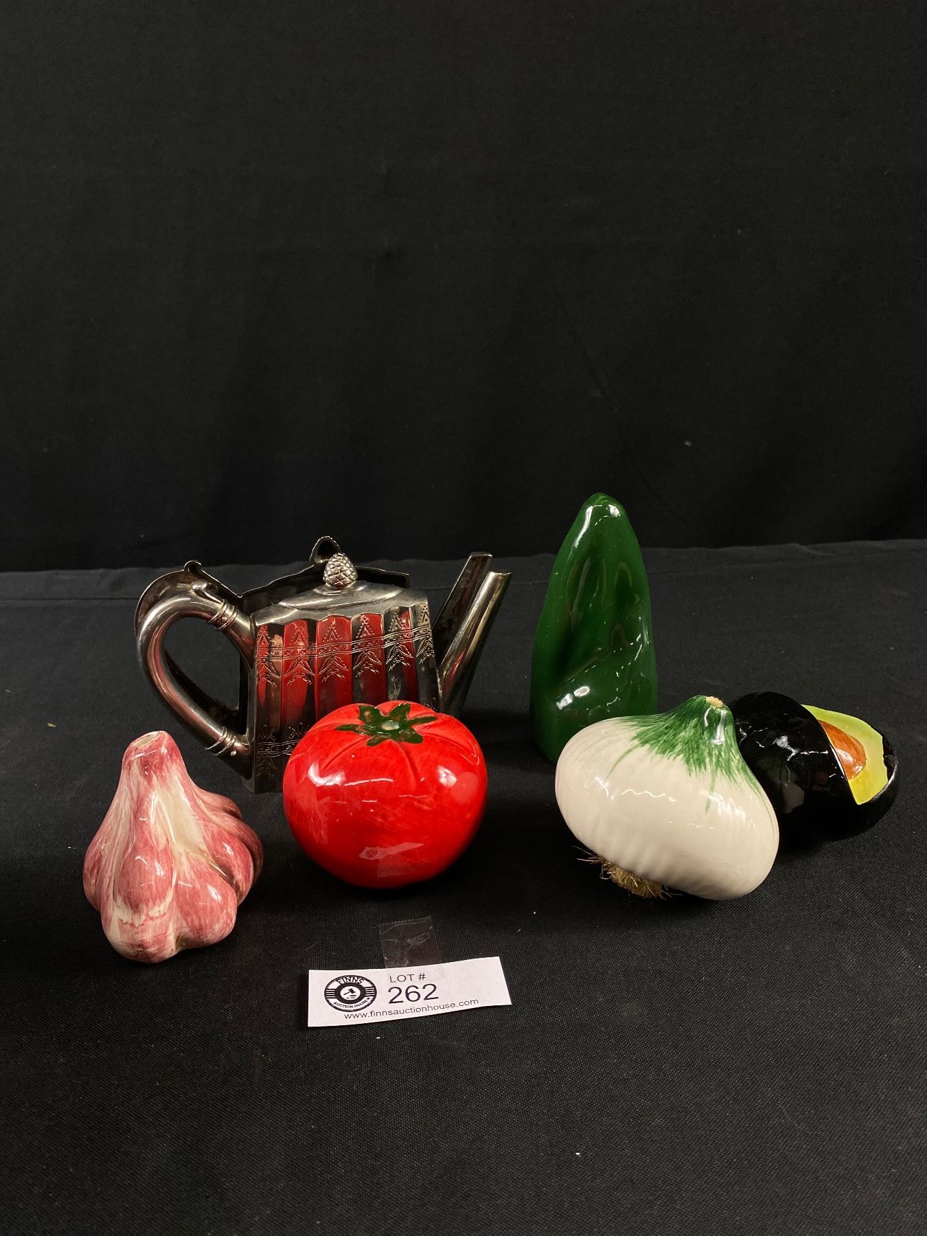 Ceramic Vegetables & Godinger Silver Teapot Napkin Holder