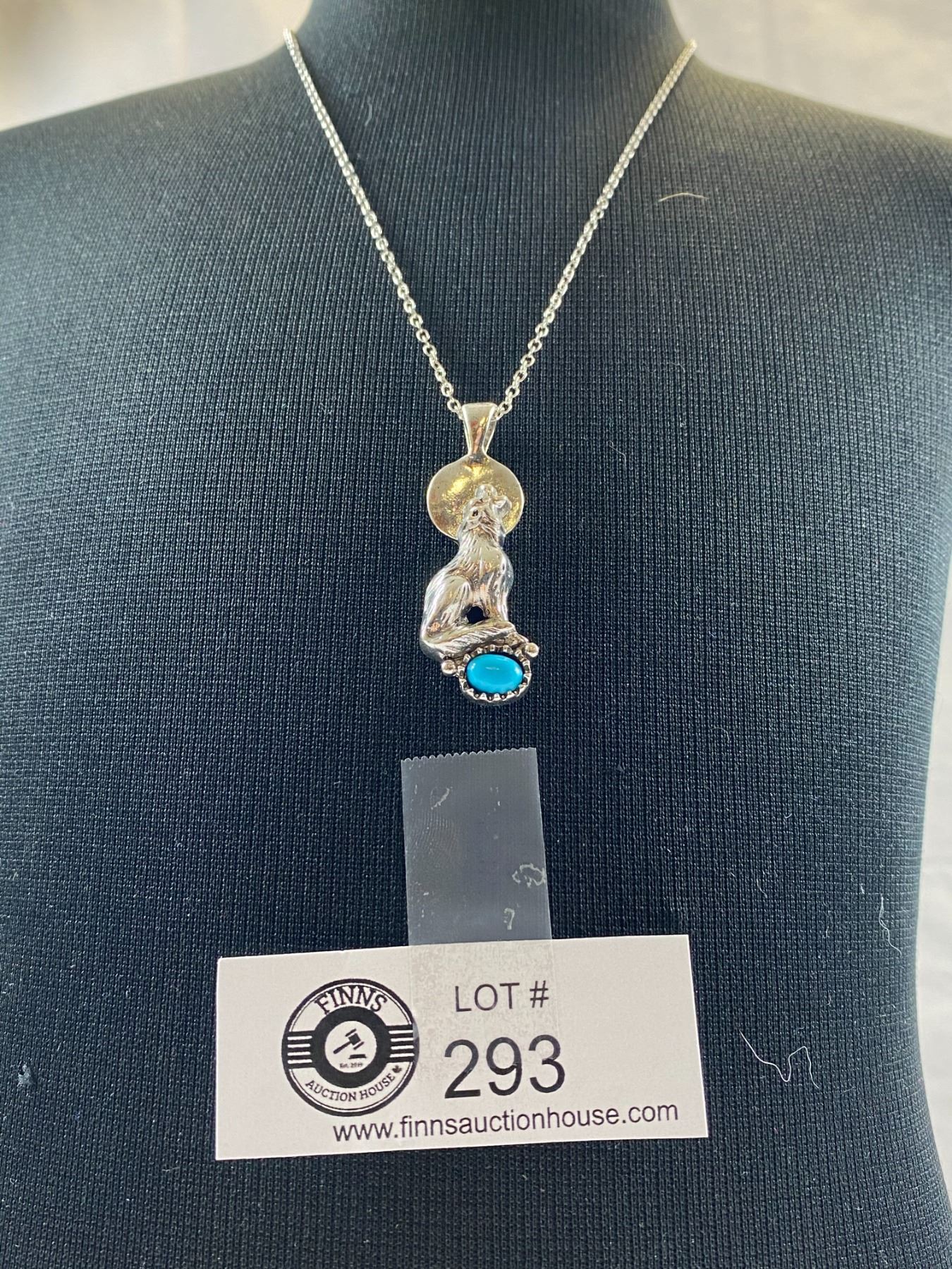 Chain and Wofl Pendant.Marked .925, But Believed to be Plated