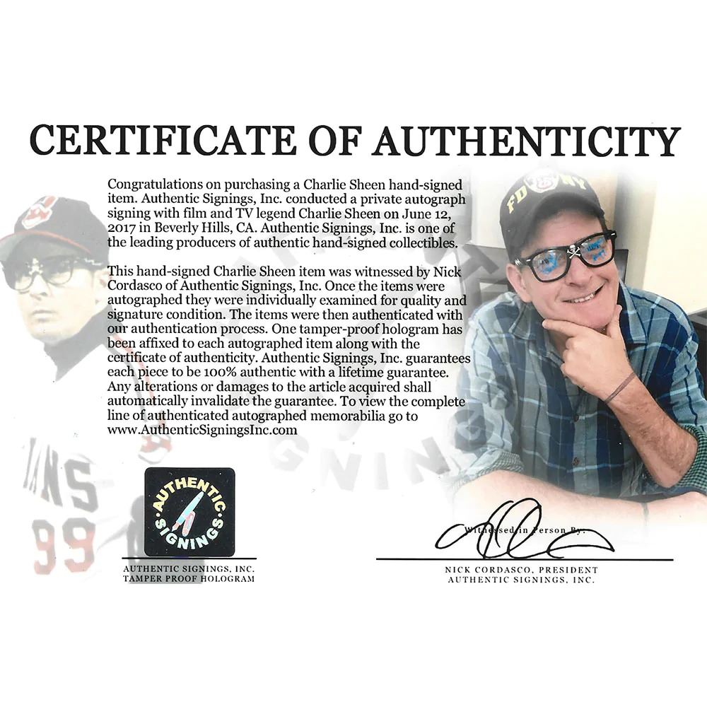 Charlie Sheen Autographed  Ricky Vaughn  Glasses (Frozen Pond)