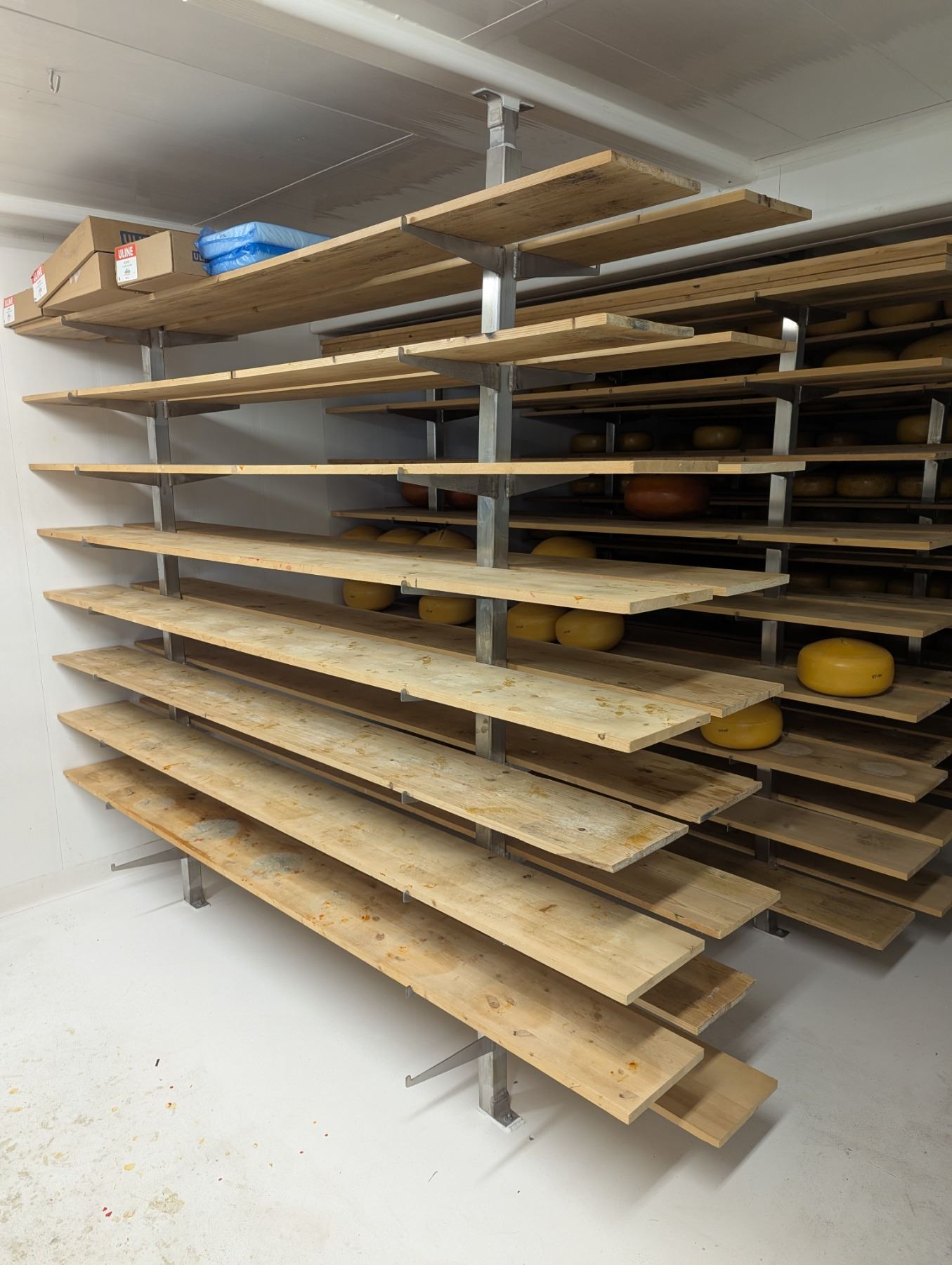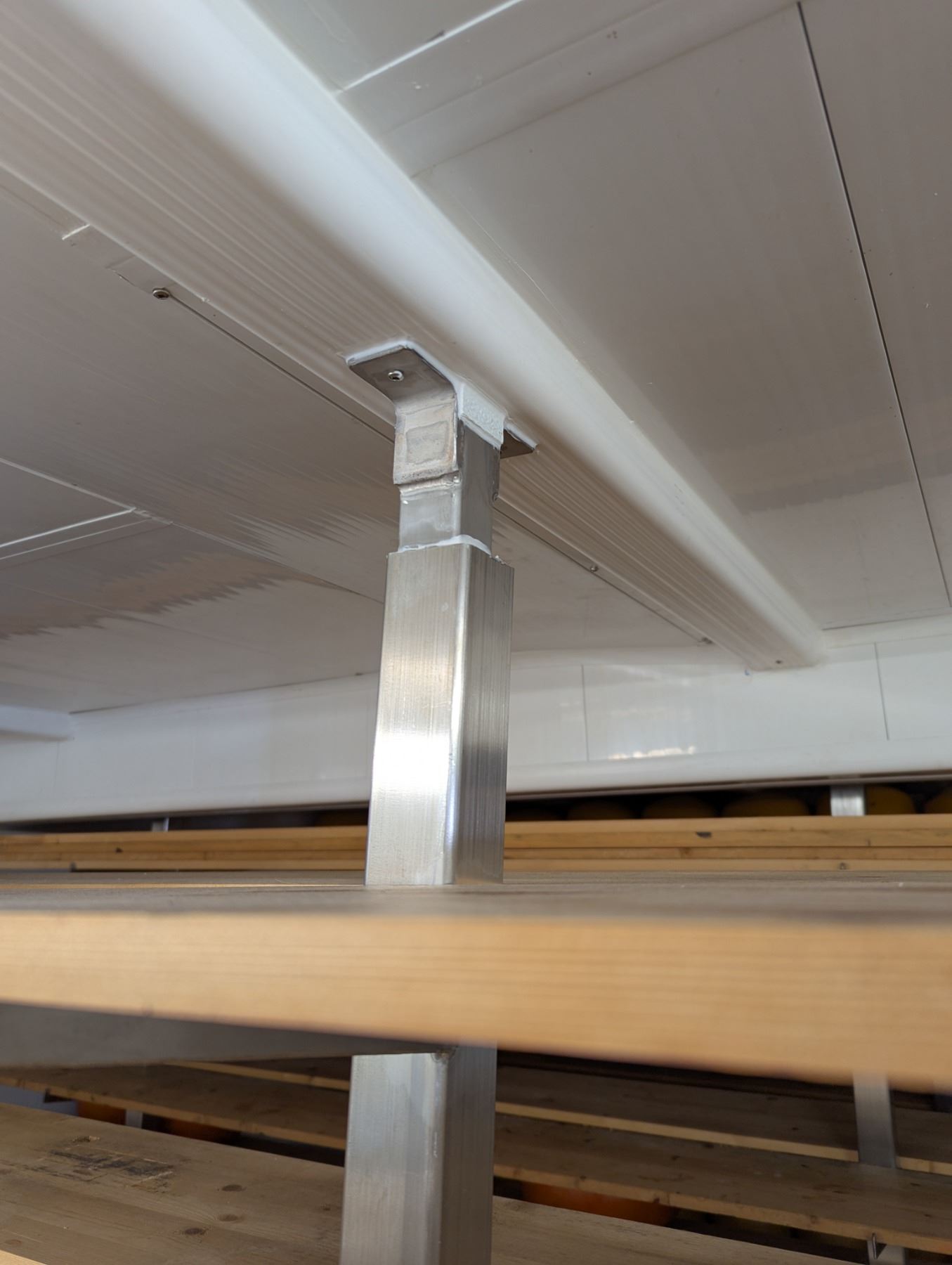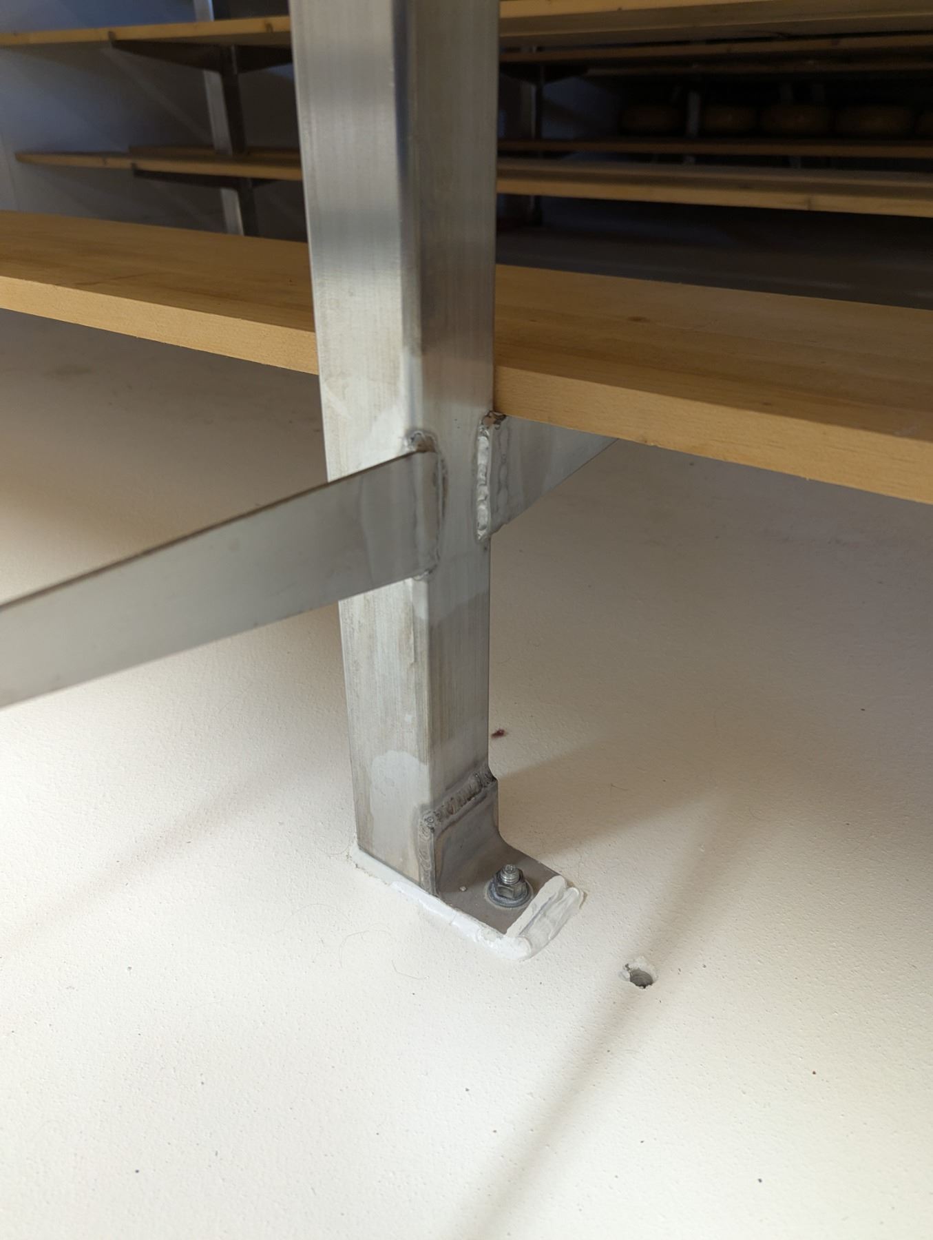 Stainless Steel leg system. With telescoping top mounts and bolt on bottoms. Wooden shelves.