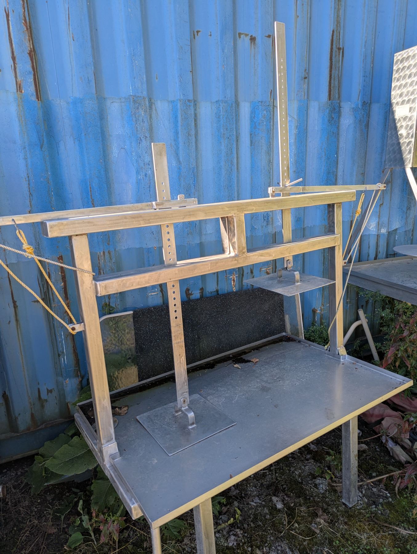 Manual cheese press. Fits two molds under it and also have plates to add a second stack under each press.