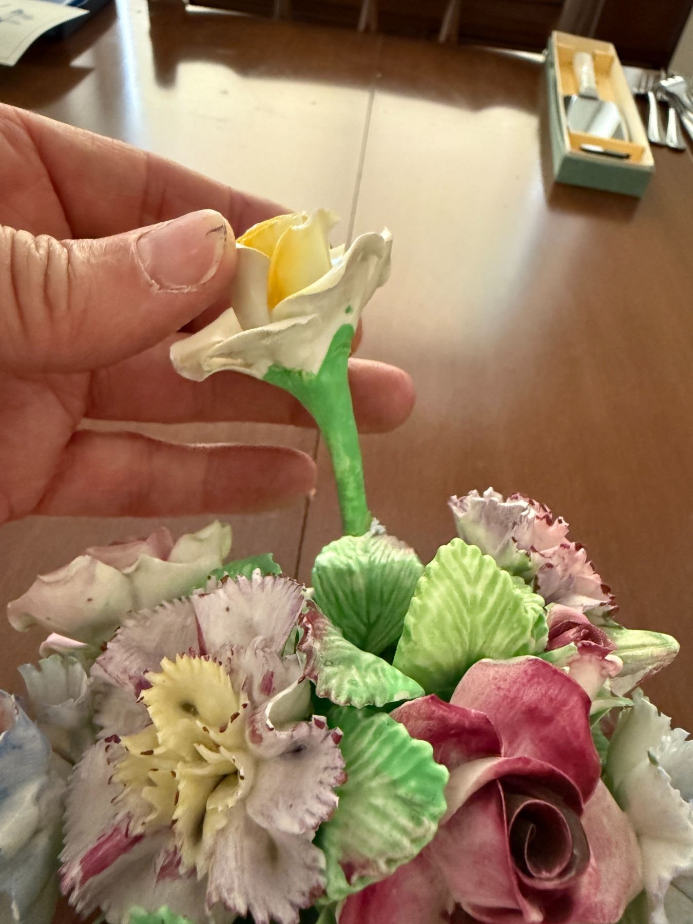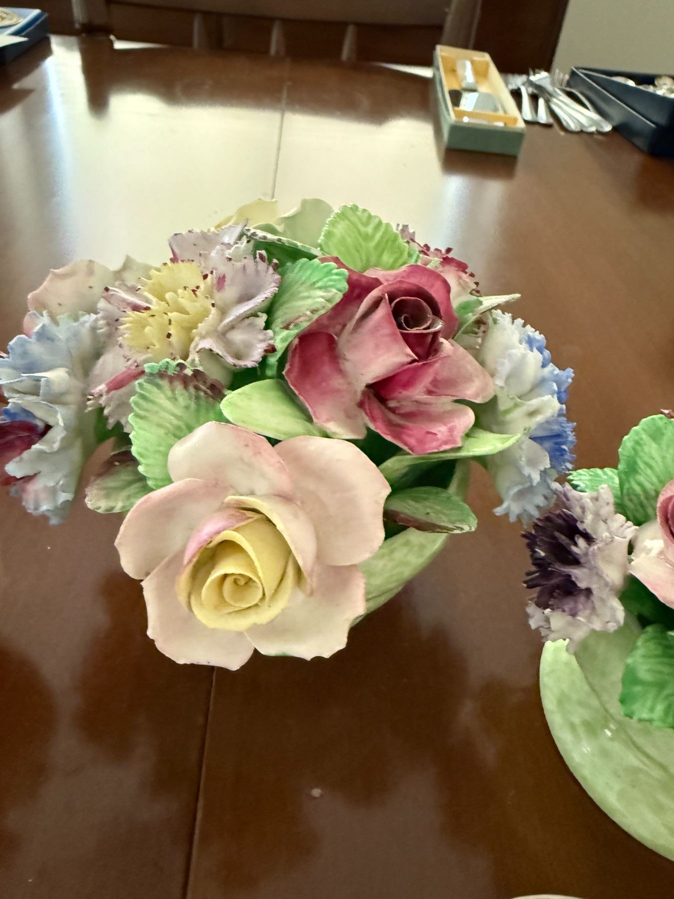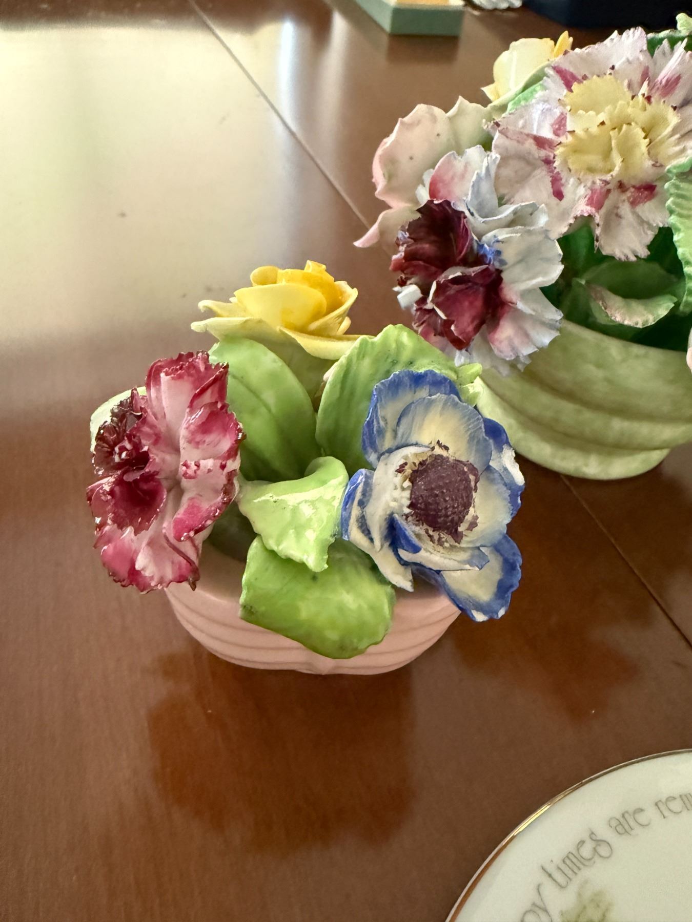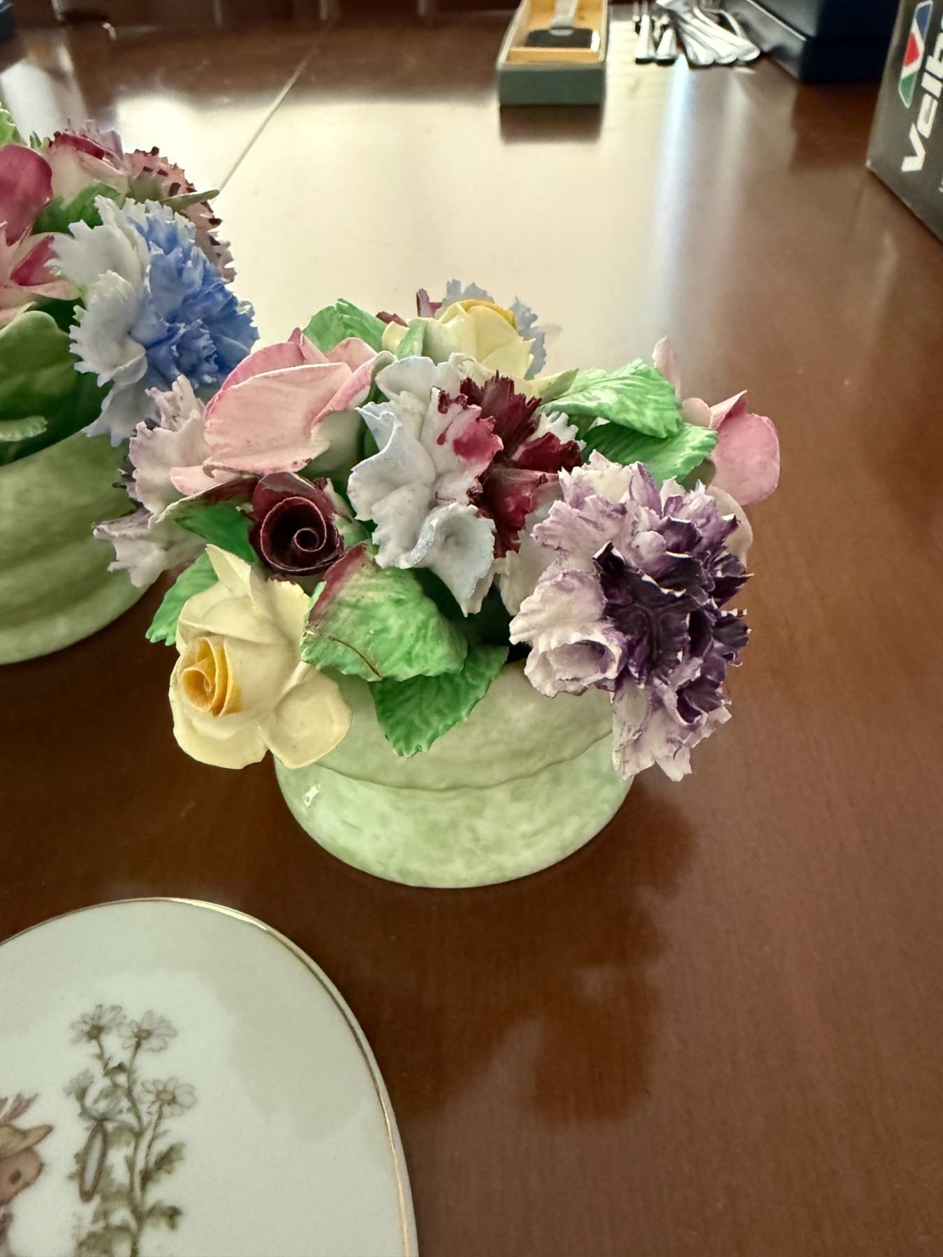 Stafford and Denton china flowers - some damage. 5x5"largest. Holly Hobbie plaques.