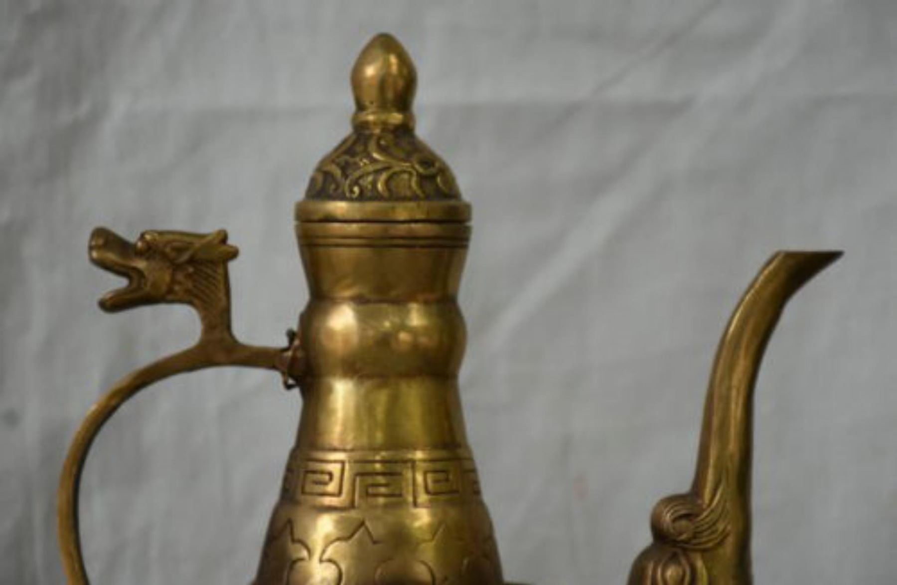 Chinese Brass 8 Immortals Wine Tea/ Wine Pot ; size - High 10.4 Long 6.4 Wide 4.8 (inch)
