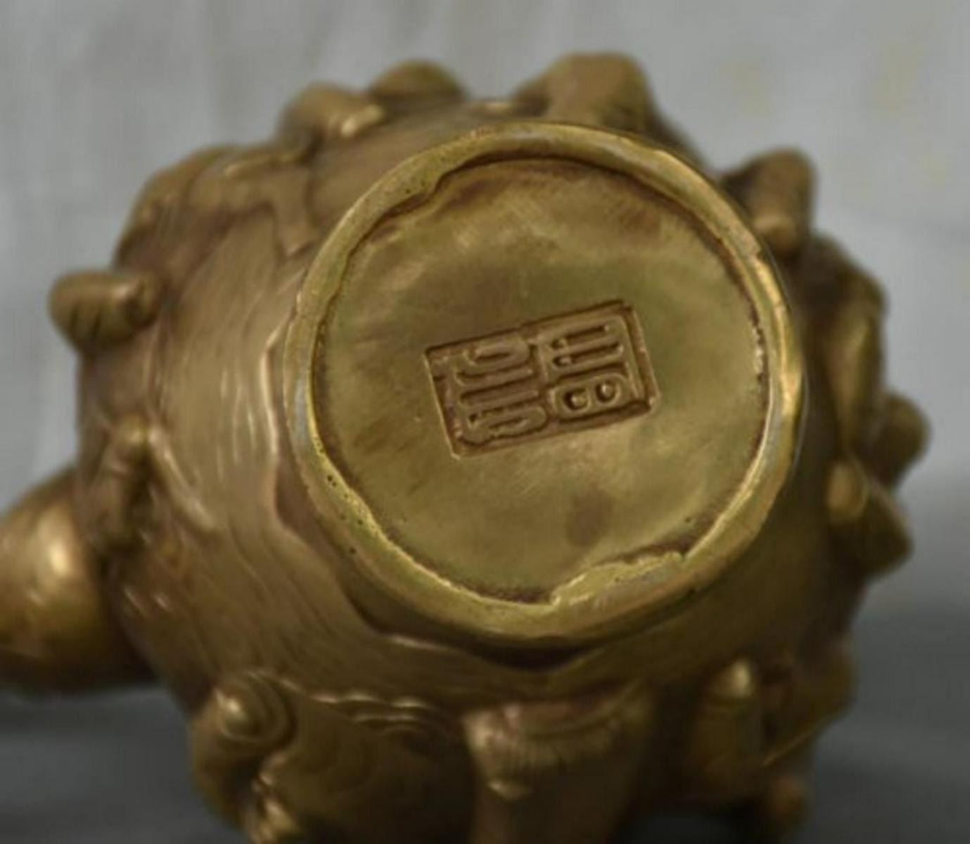 Chinese Brass 8 Immortals Wine Tea/ Wine Pot ; size - High 10.4 Long 6.4 Wide 4.8 (inch)