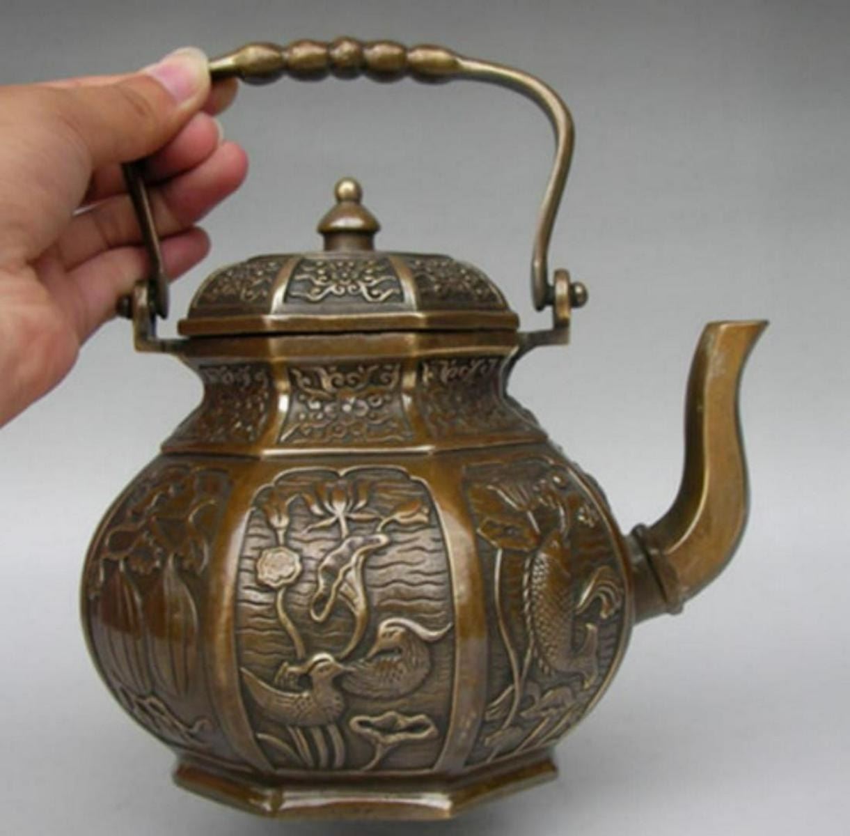 Chinese brass Fish Mandarin Duck Wine Pot Flagon Kettle;Chinese brass Fish Mandarin Duck Wine Pot Flagon Kettle