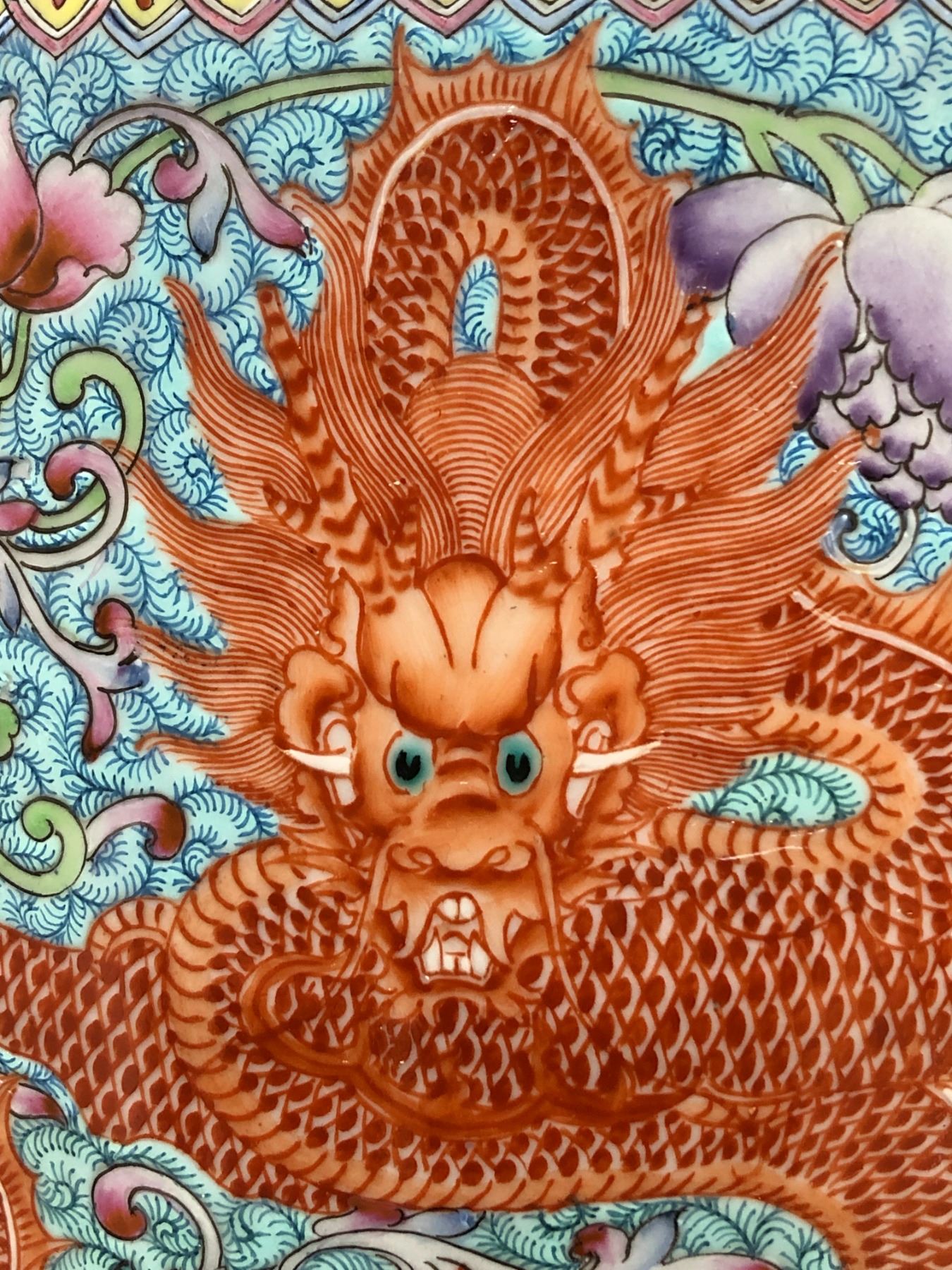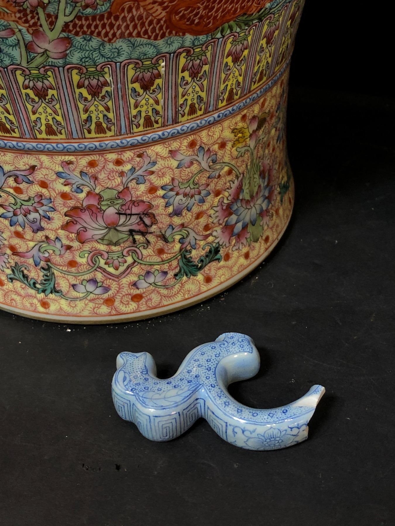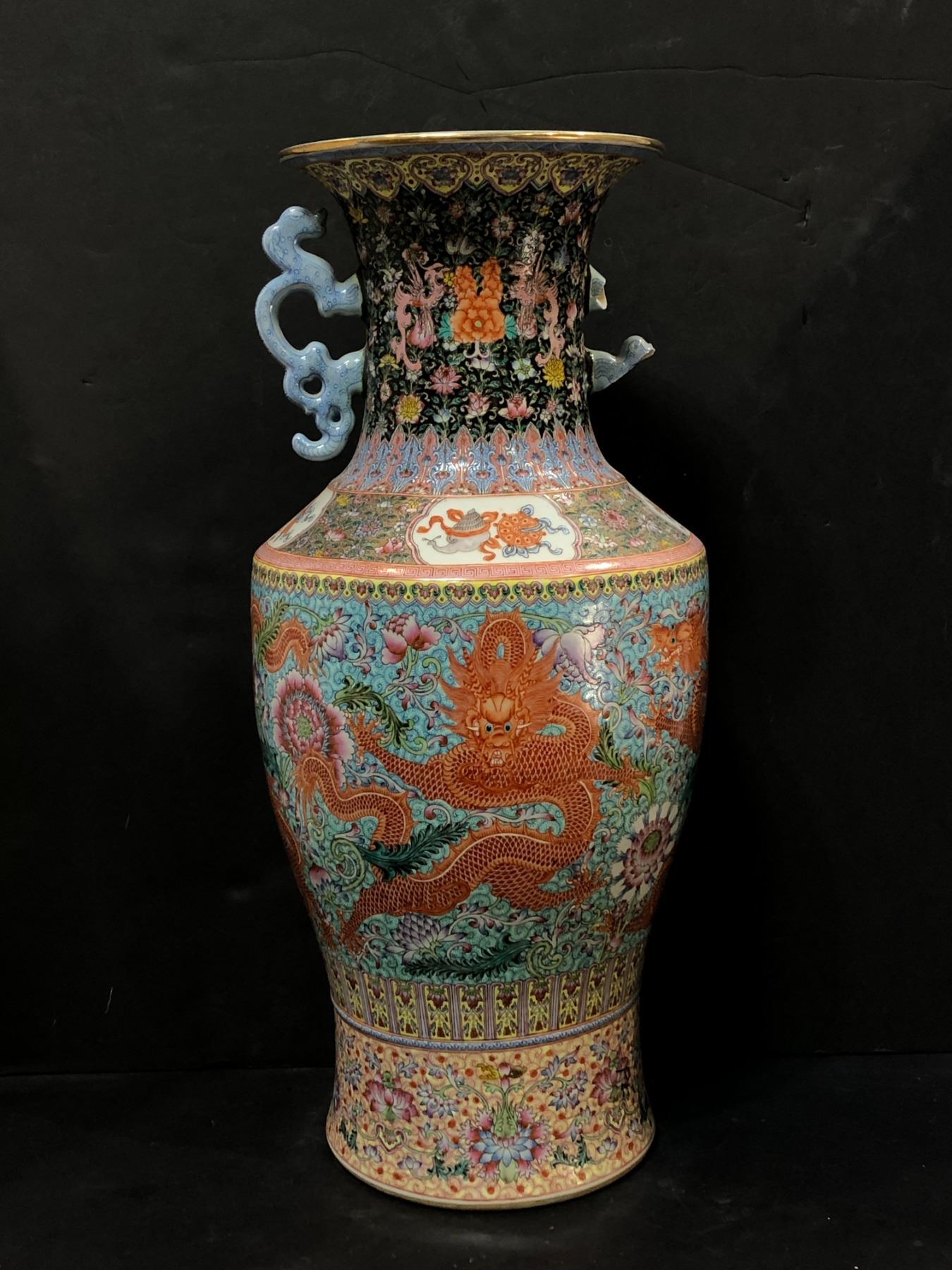 Chinese coalport twin handled porcelain vase (one handle broken as shown in photo) - approx 23" height
