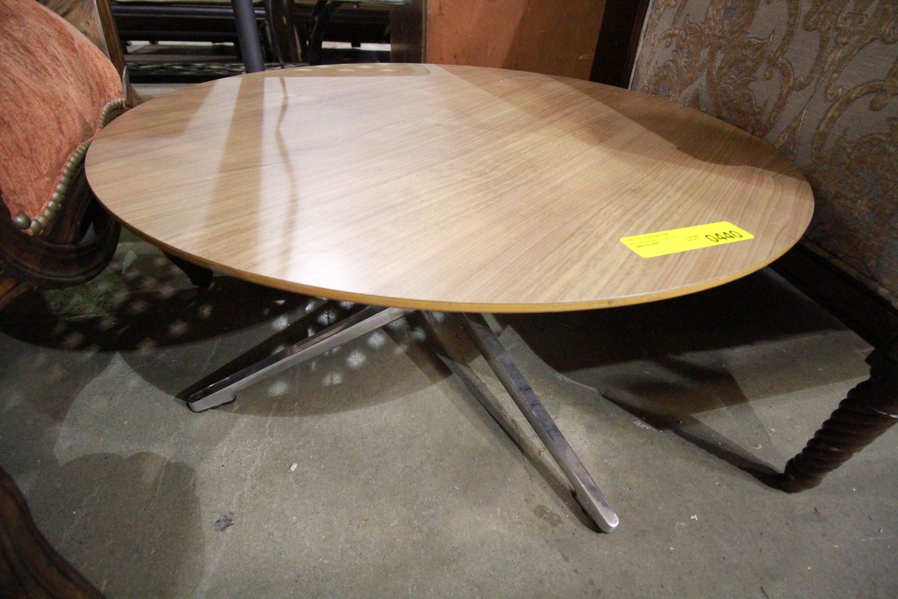 Chrome Based Coffee Table w/Heavy Solid Ash Top 30in. Round