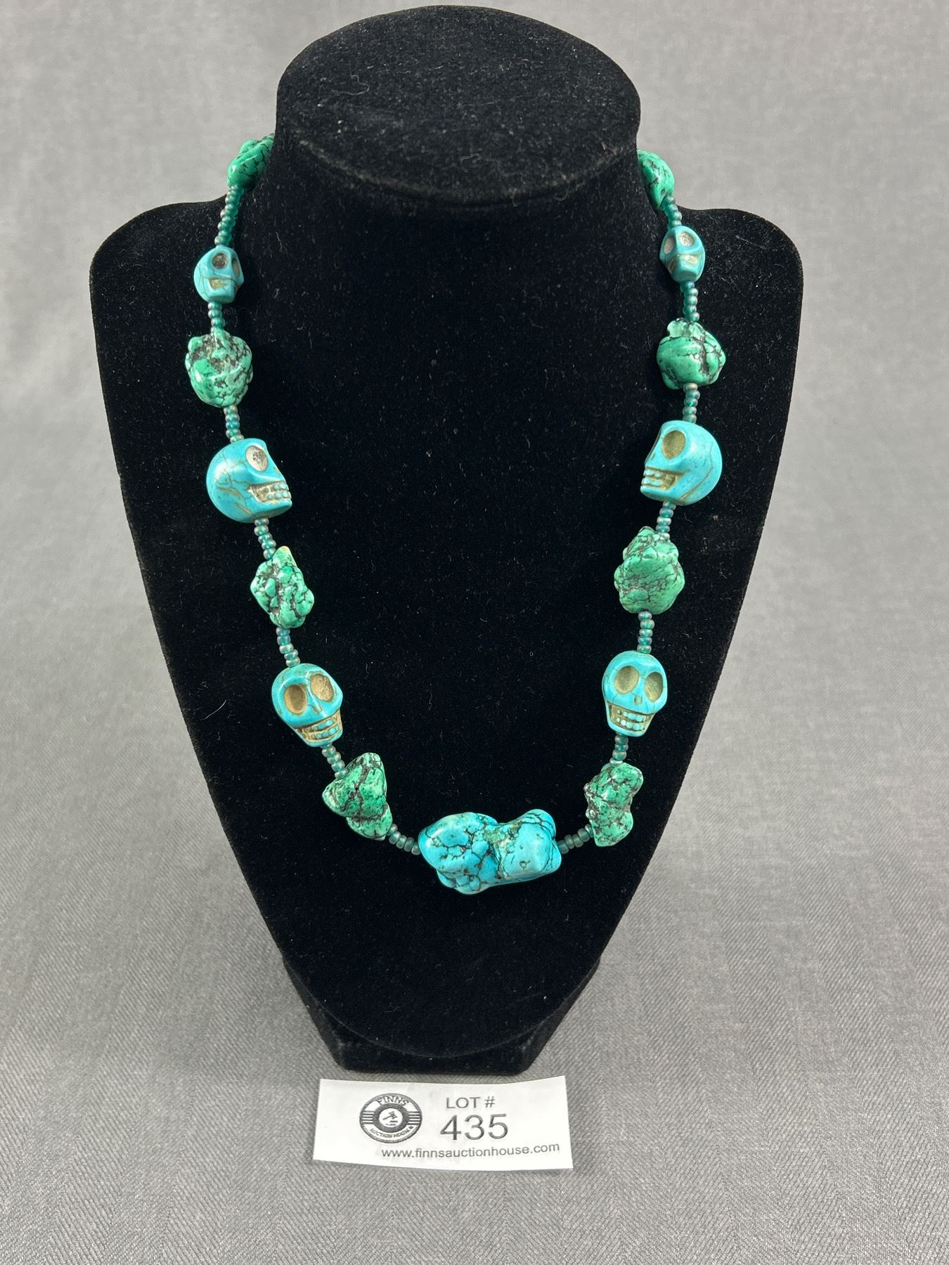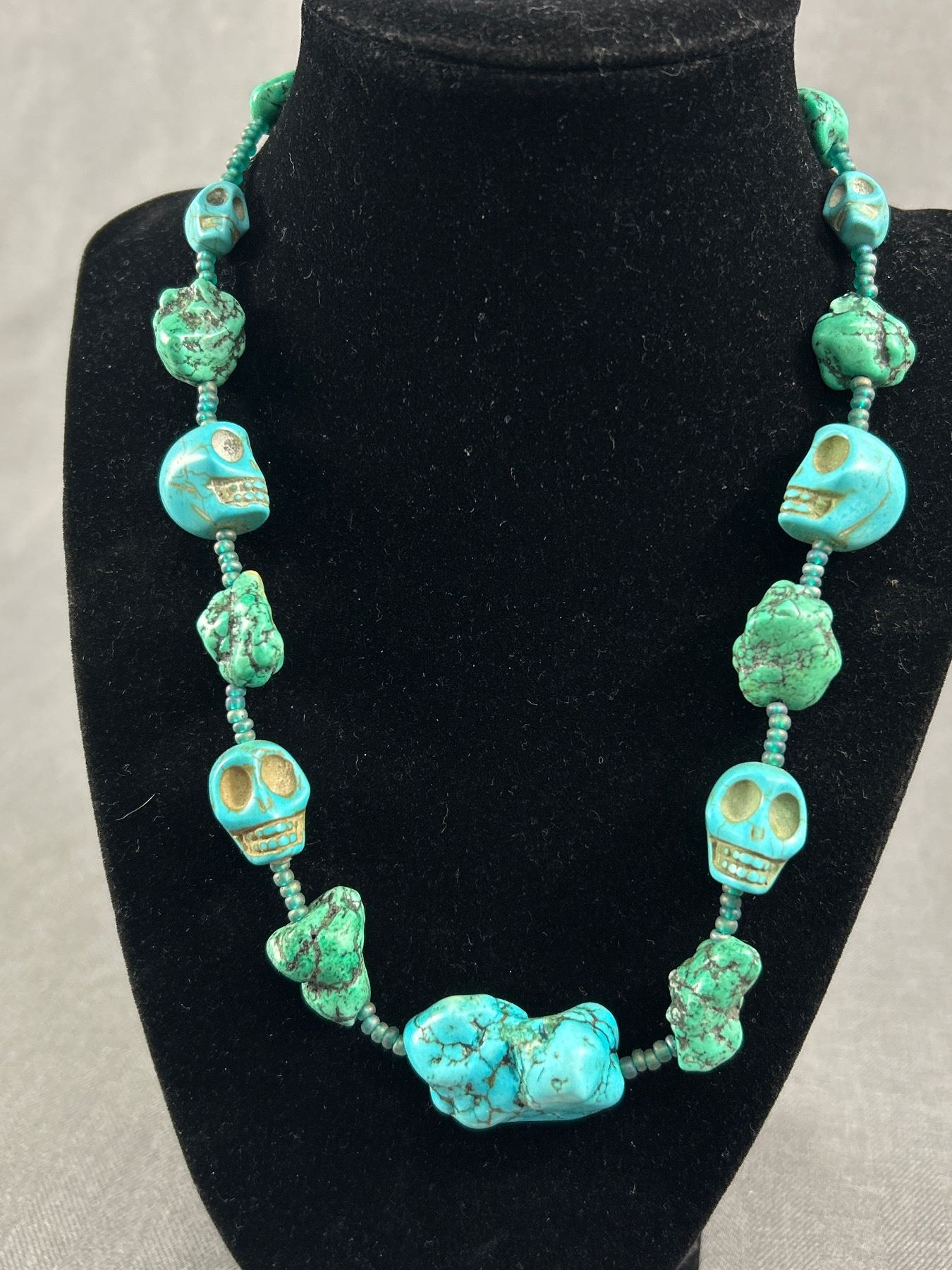 Chunky Stones & Skull Beaded Necklace. Approx. 16"L