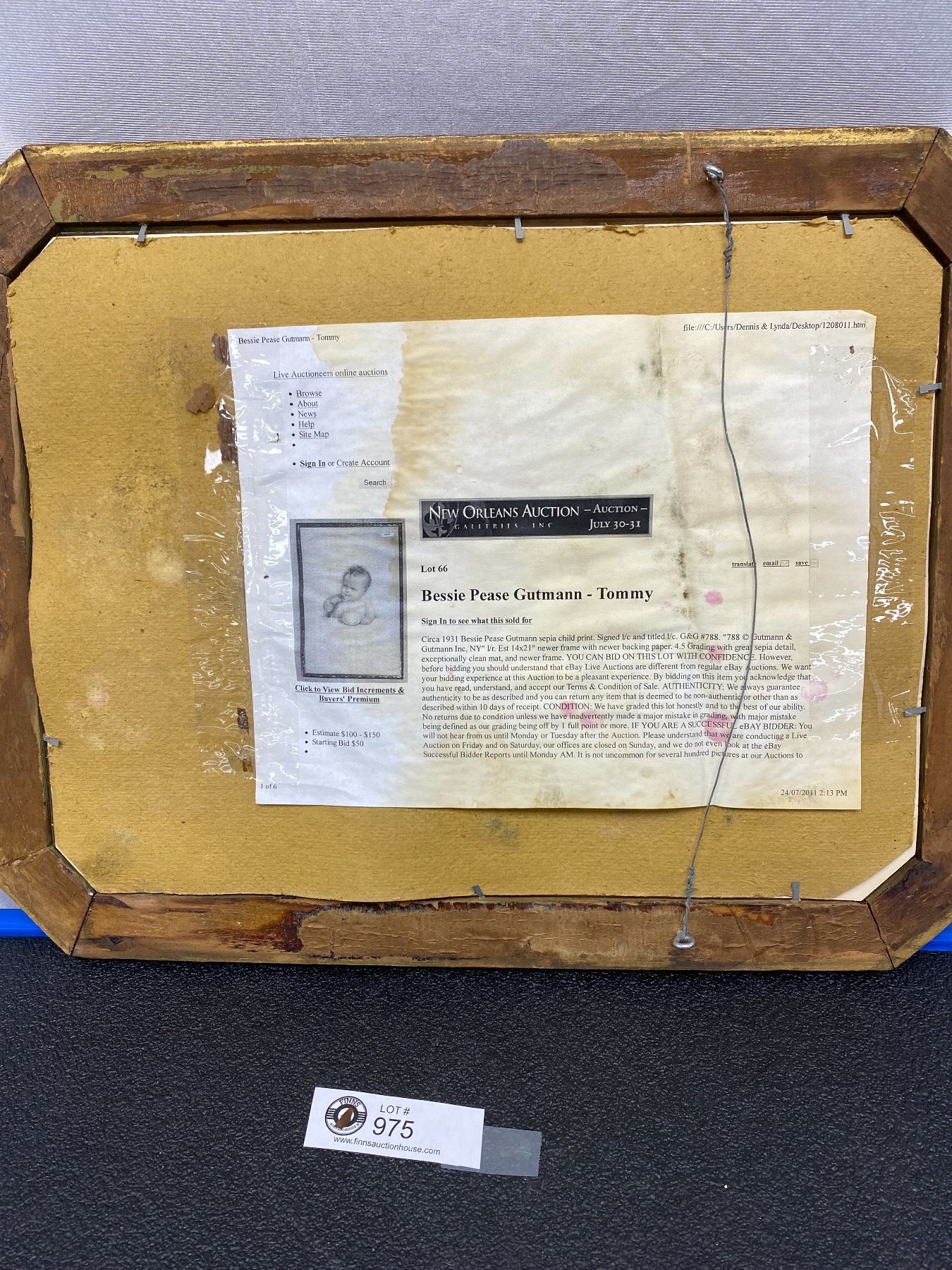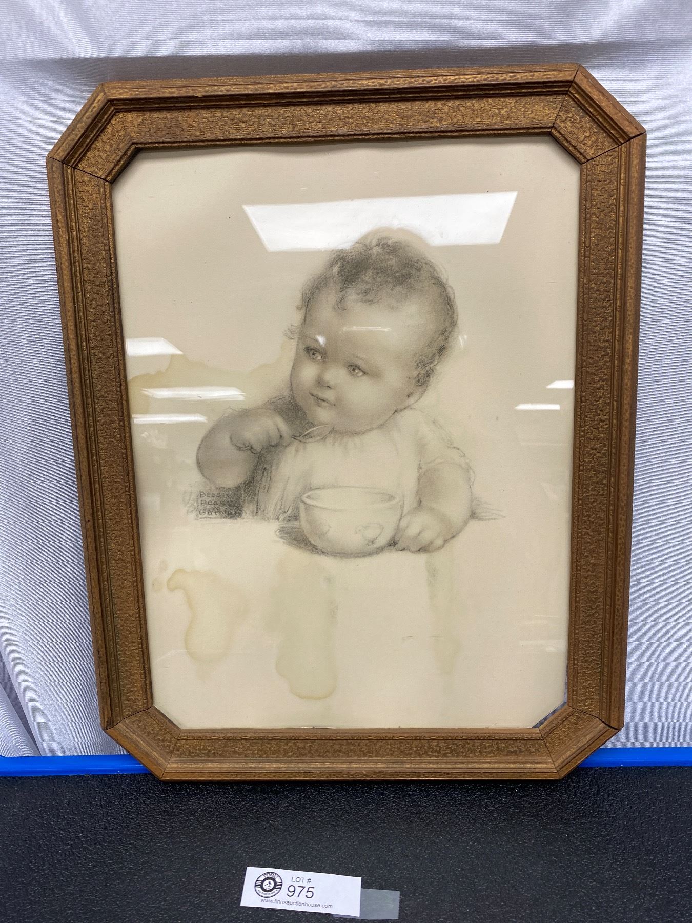 Circa 1931 Bessie Pease Gutmann Sepia Child Print in Frame. Some Water Damage